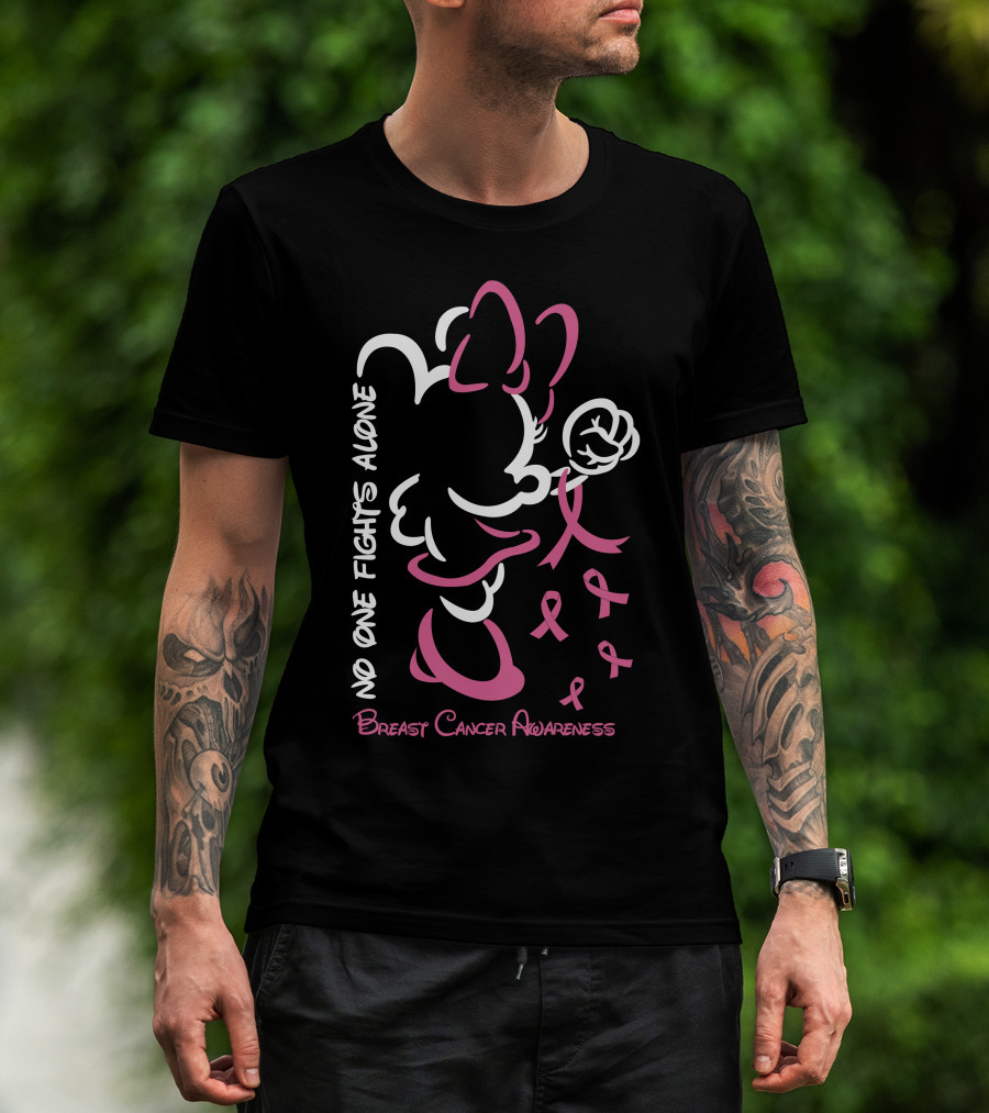 No One Fights Alone Breast Cancer Awareness Minnie Bow Pink T-Shirt