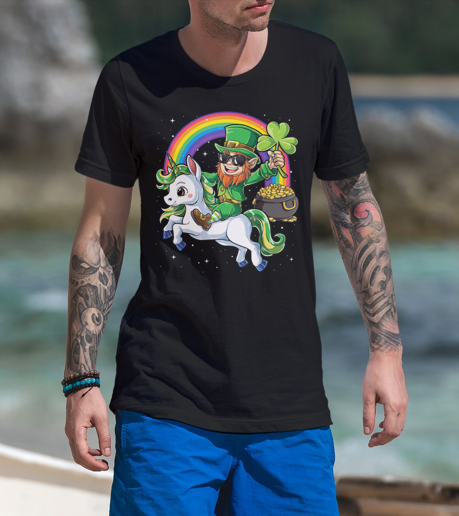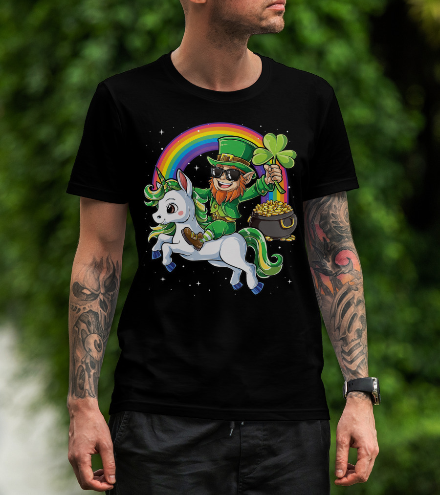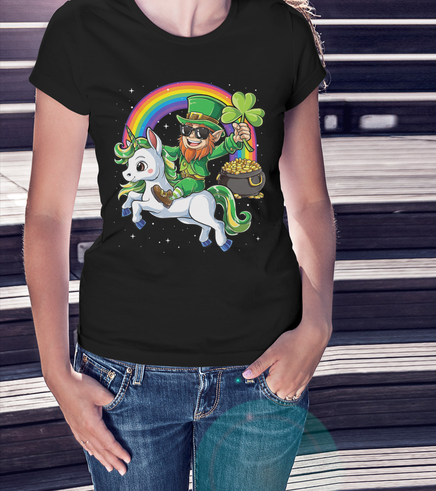 Unicorn Leprechaun St Patricks Day Girls Kids Women Rainbow Shamrock Gold T-Shirt