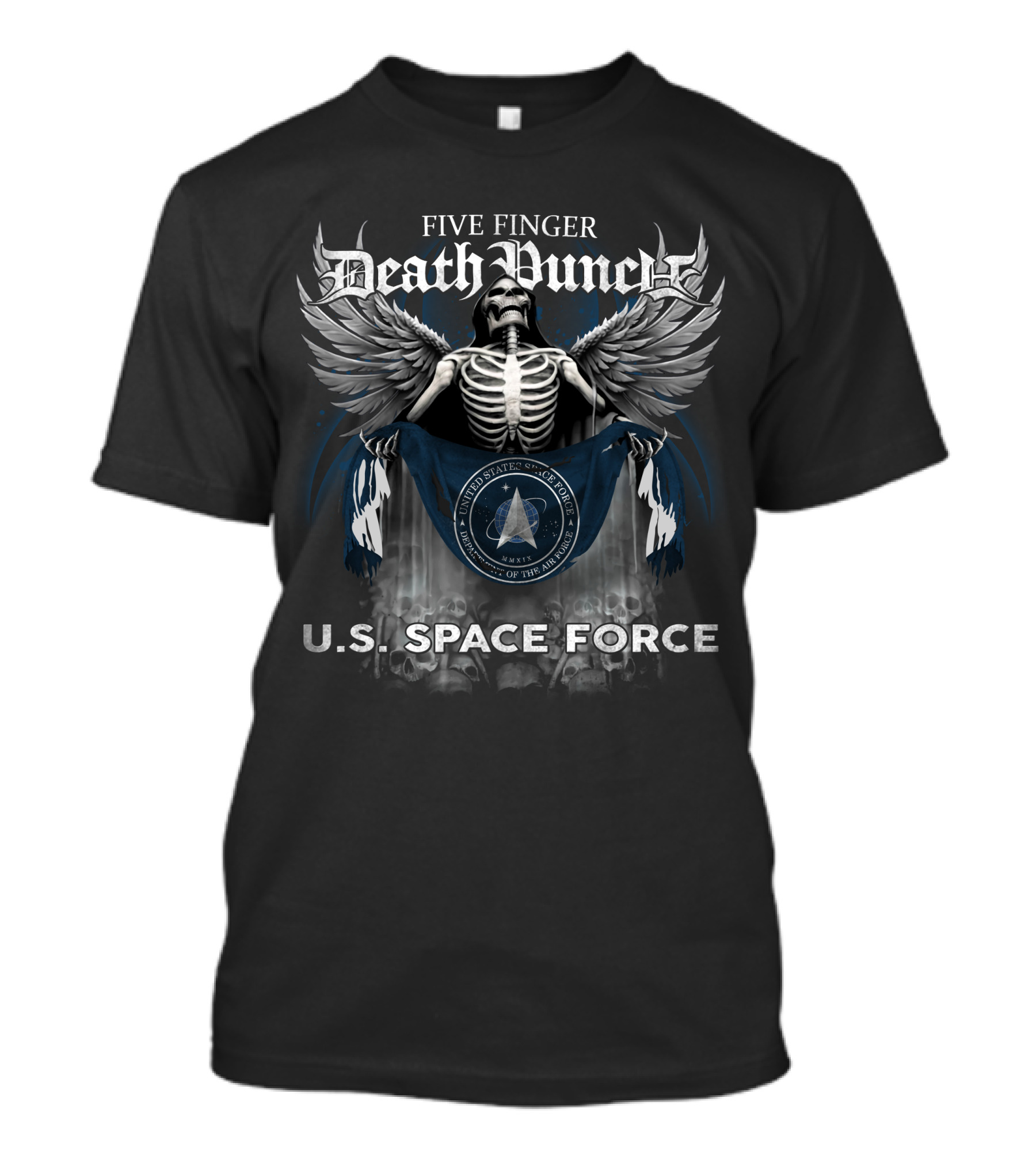Five Finger Death Punch Skull Holding United States Space Force Flag With Wings And U.S. Space Force Text T-Shirt