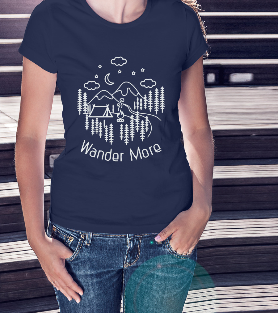 Wander More Camping Hiking Mountain Adventure Night Sky T-Shirt