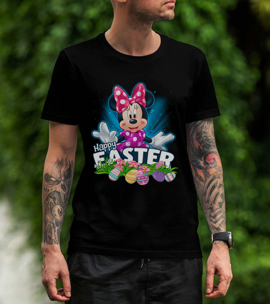 Minnie Mouse Happy Easter With Colorful Eggs And Flowers T-Shirt