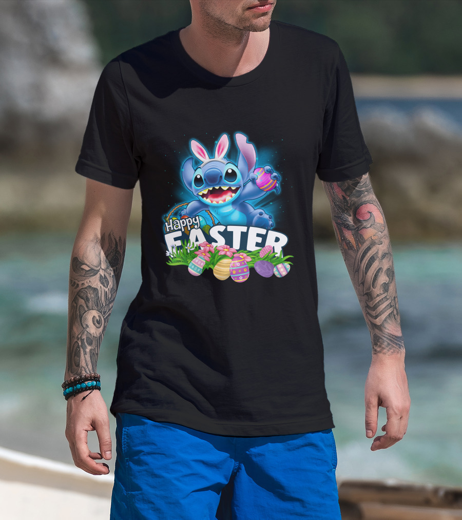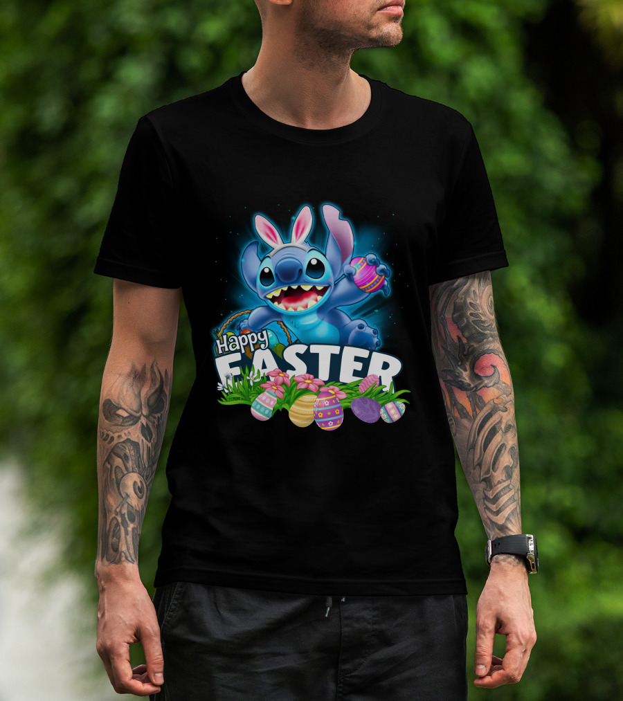 Happy Easter Stitch With Colorful Eggs And Flowers T-Shirt