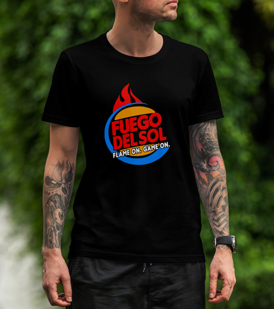 The Fuego Del Sol Flame On Game On T-shirt is designed for everyday wear and a consistent fit. Fabric is pre-shrunk ring-spun cotton with durable stitching. See the size chart below for exact measurements.