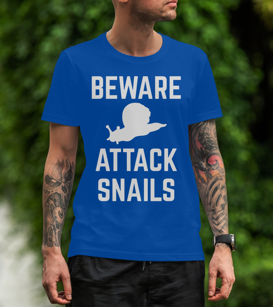 The BEWARE ATTACK SNAILS T-shirt is designed for everyday wear and a consistent fit. Fabric is pre-shrunk ring-spun cotton with durable stitching. See the size chart below for exact measurements.