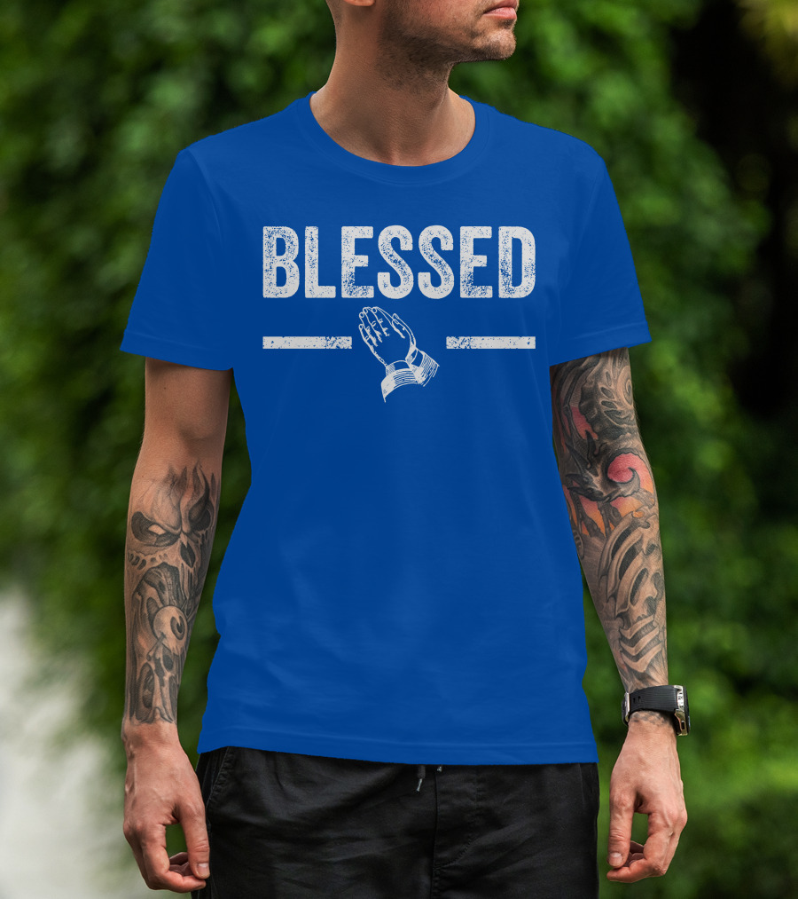The Blessed Praying Hands Christian Faith T-shirt is designed for everyday wear and a consistent fit. Fabric is pre-shrunk ring-spun cotton with durable stitching. See the size chart below for exact measurements.