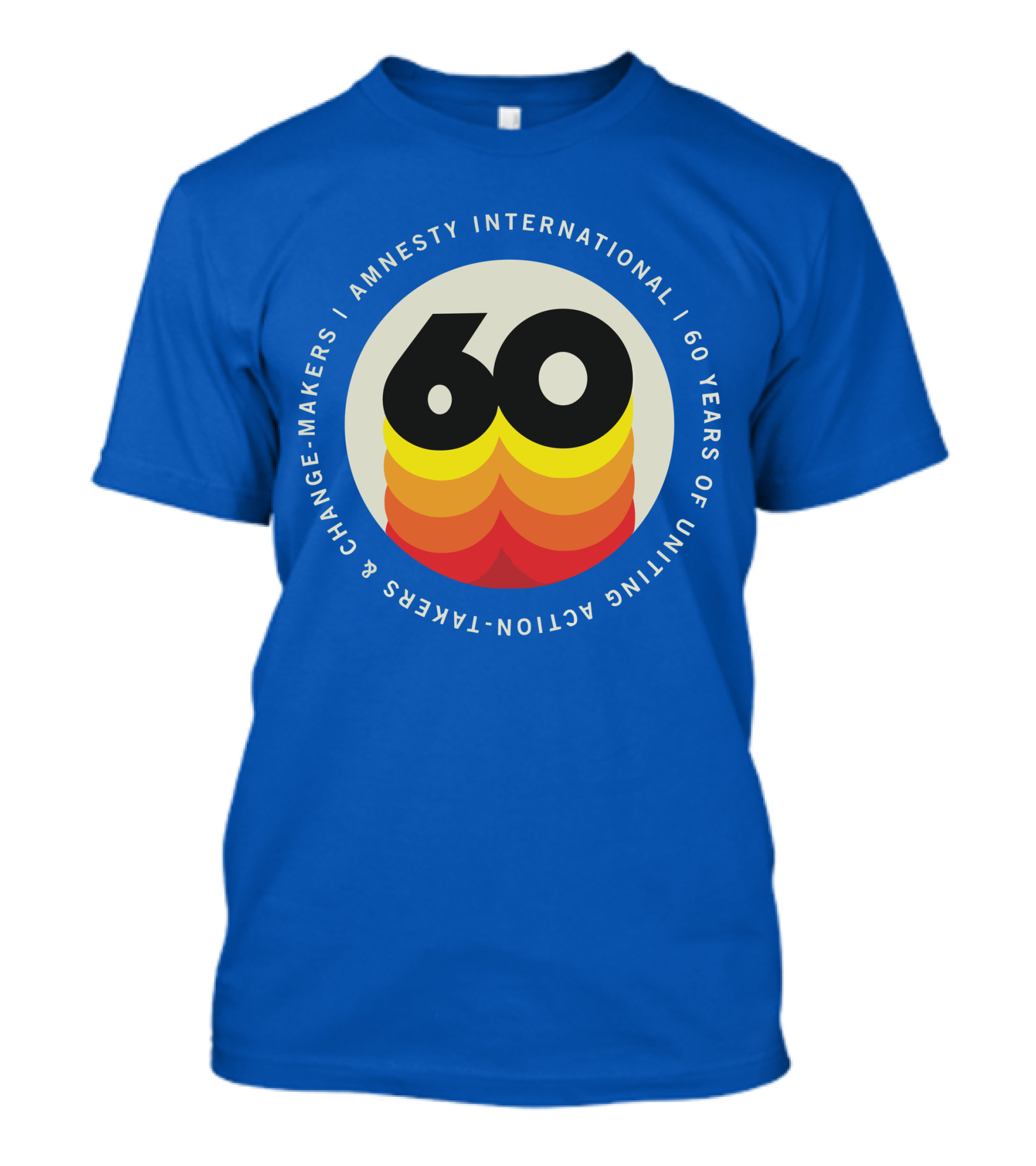 The Amnesty International 60 Years of Uniting Action-Takers and Change-Makers T-shirt is designed for everyday wear and a consistent fit. Fabric is pre-shrunk ring-spun cotton with durable stitching. See the size chart below for exact measurements.