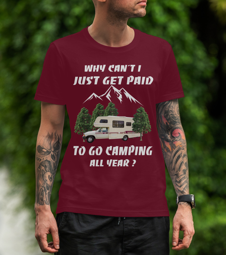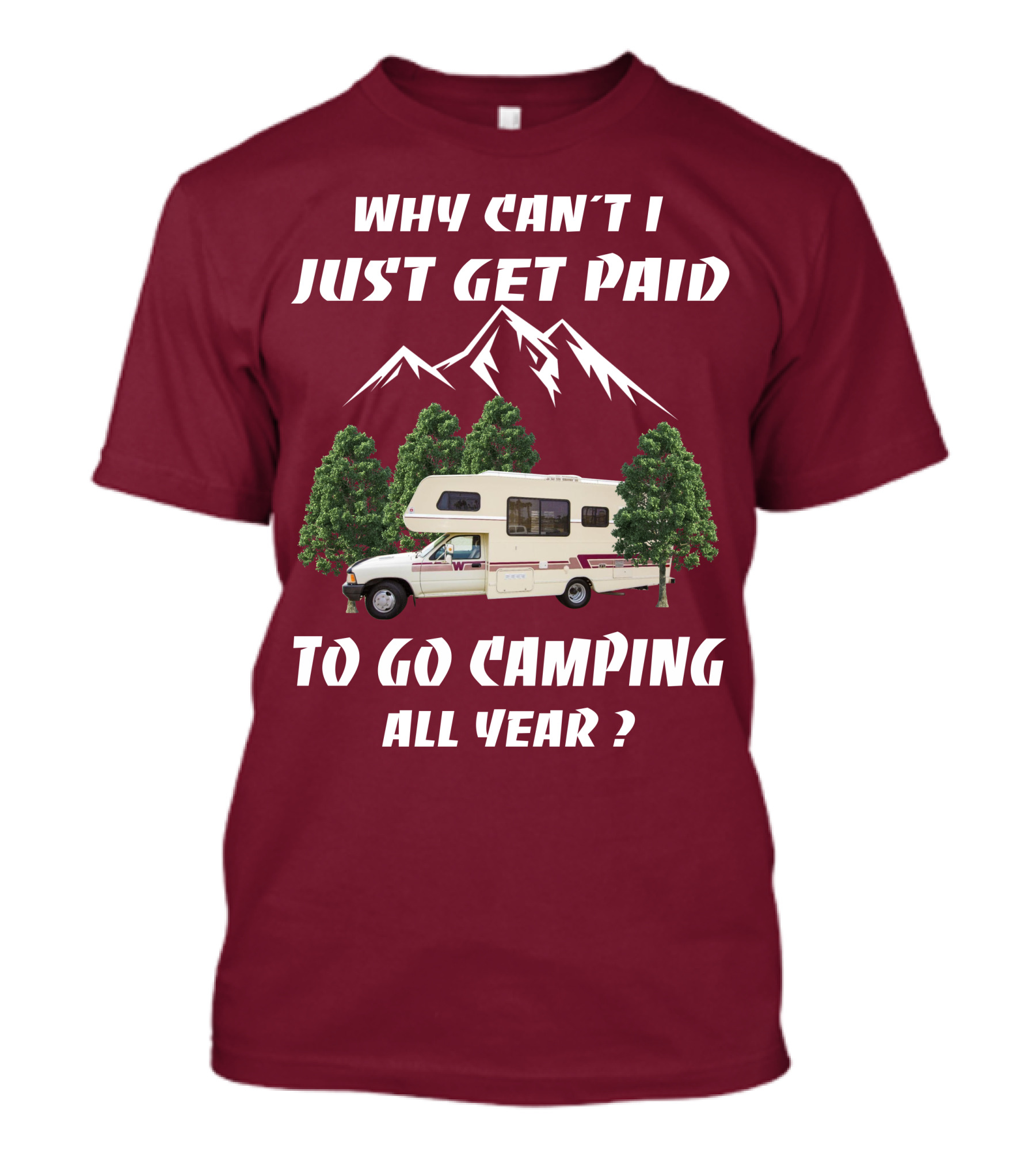 The Why Can't I Just Get Paid to Go Camping All Year 1991 Toyota Winnebago Warrior T-shirt is designed for everyday wear and a consistent fit. Fabric is pre-shrunk ring-spun cotton with durable stitching. See the size chart below for exact measurements.