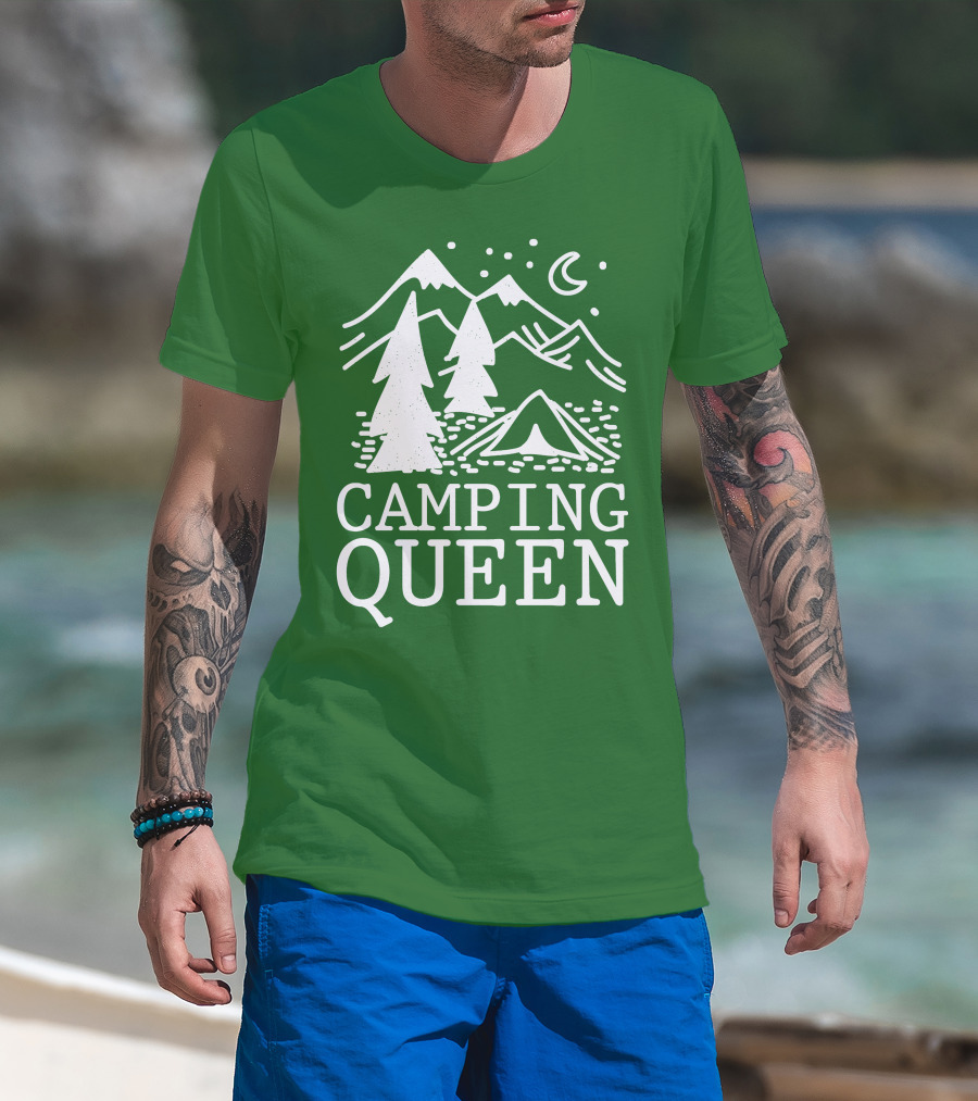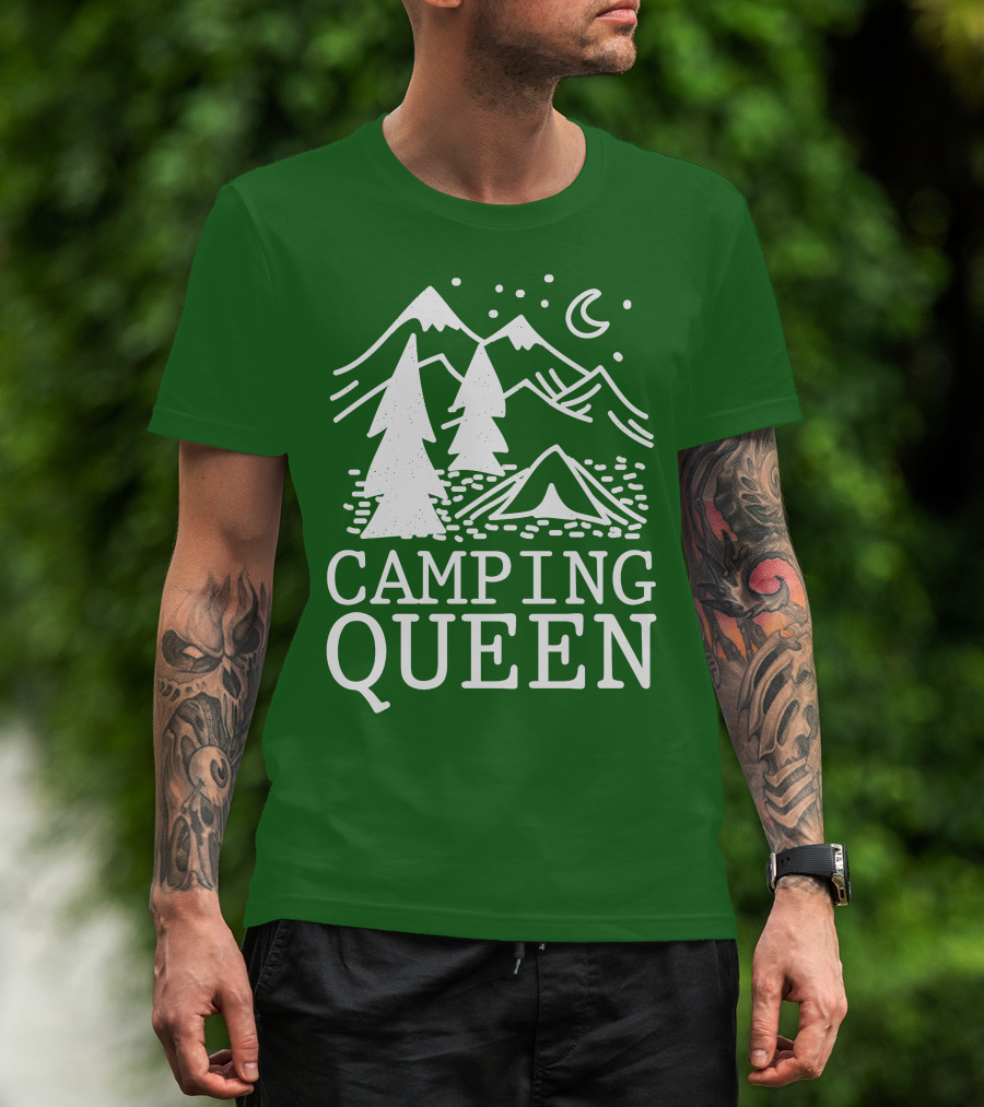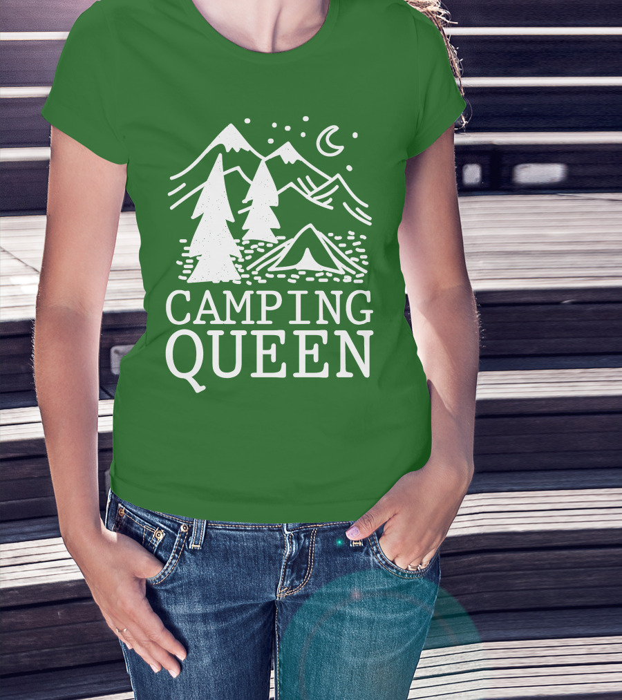 Camping Queen Mountain Tent Moon Forest Adventure T-Shirt