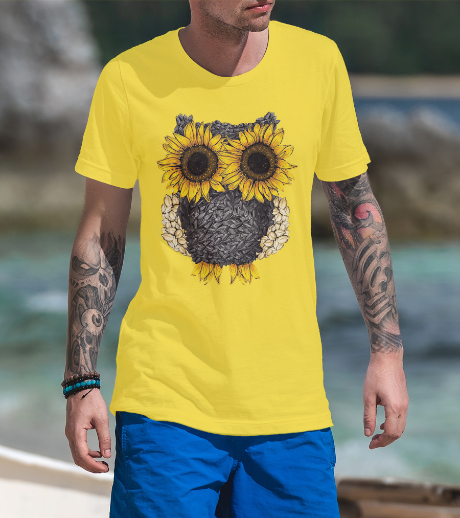 The Sunflower Sunflower Owl Owl Sunflower Sunflower T-shirt is designed for everyday wear and a consistent fit. Fabric is pre-shrunk ring-spun cotton with durable stitching. See the size chart below for exact measurements.