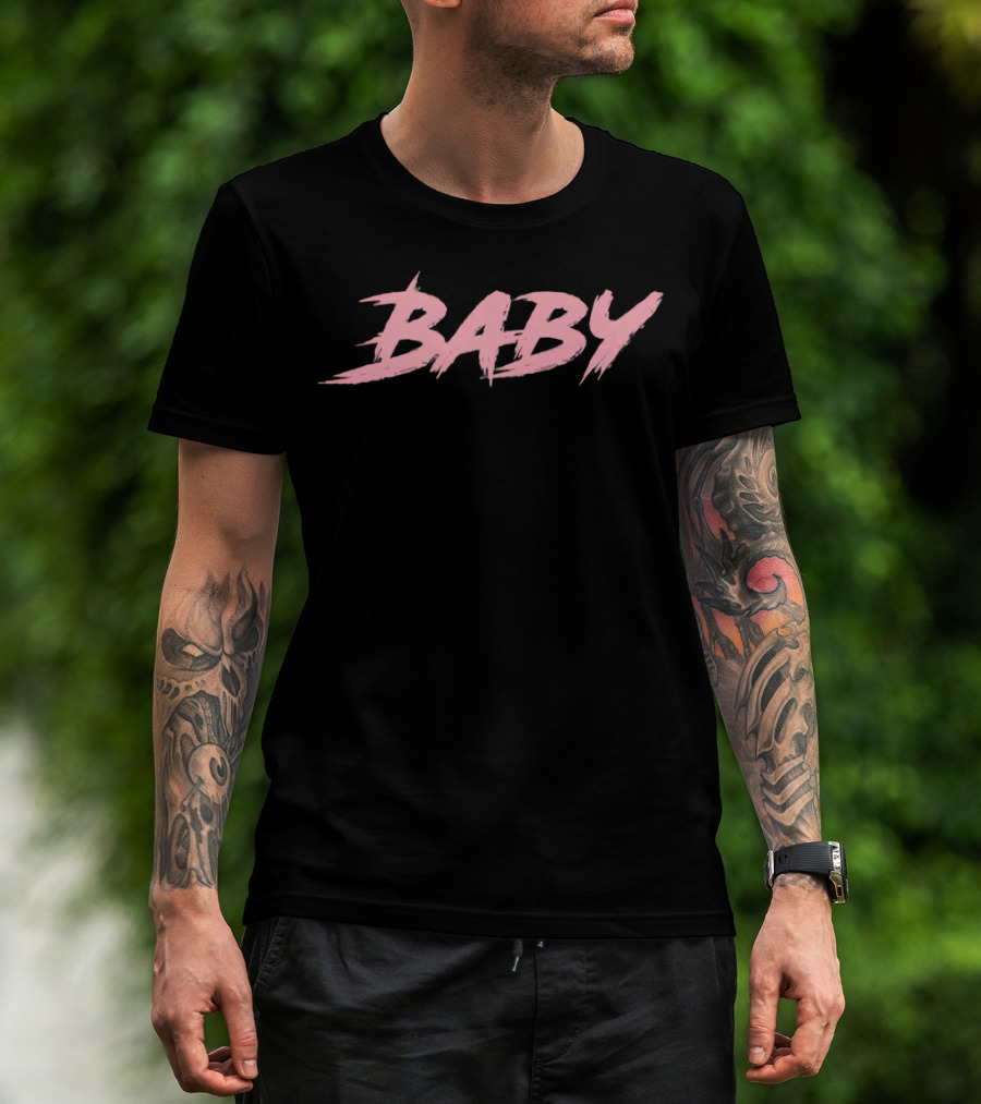 The Baby Abi Shop Style Pink Brush Text T-shirt is designed for everyday wear and a consistent fit. Fabric is pre-shrunk ring-spun cotton with durable stitching. See the size chart below for exact measurements.