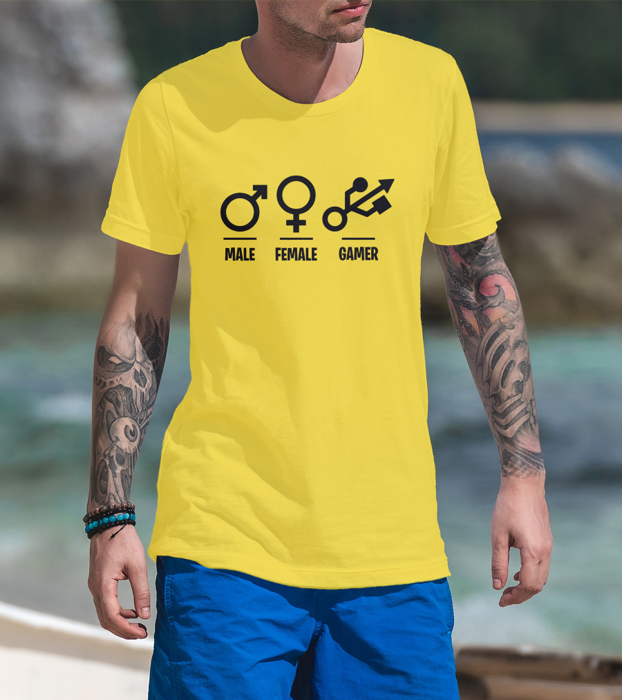 The Male Female Gamer USB T-shirt is designed for everyday wear and a consistent fit. Fabric is pre-shrunk ring-spun cotton with durable stitching. See the size chart below for exact measurements.