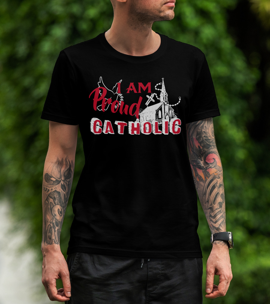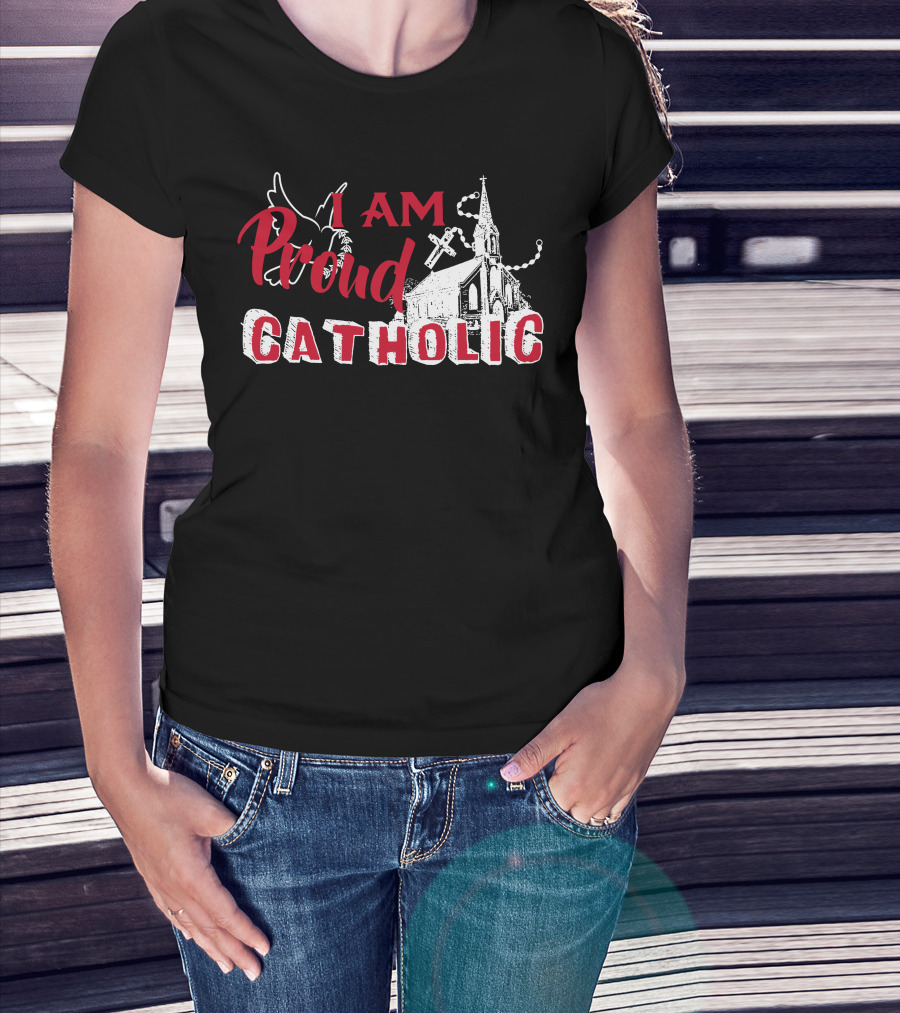 I Am Proud Catholic Church Cross And Dove T-Shirt
