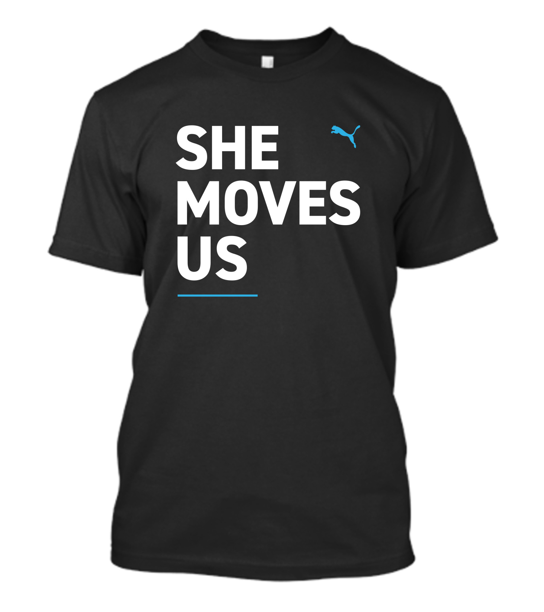 The She Moves Us Neymar Puma T-shirt is designed for everyday wear and a consistent fit. Fabric is pre-shrunk ring-spun cotton with durable stitching. See the size chart below for exact measurements.