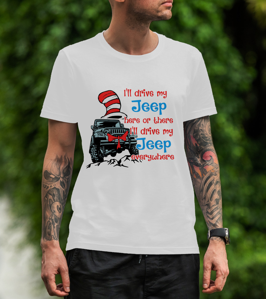 I'll Drive My Jeep Here Or There I'll Drive My Jeep Everywhere Cat In The Hat Inspired T-Shirt