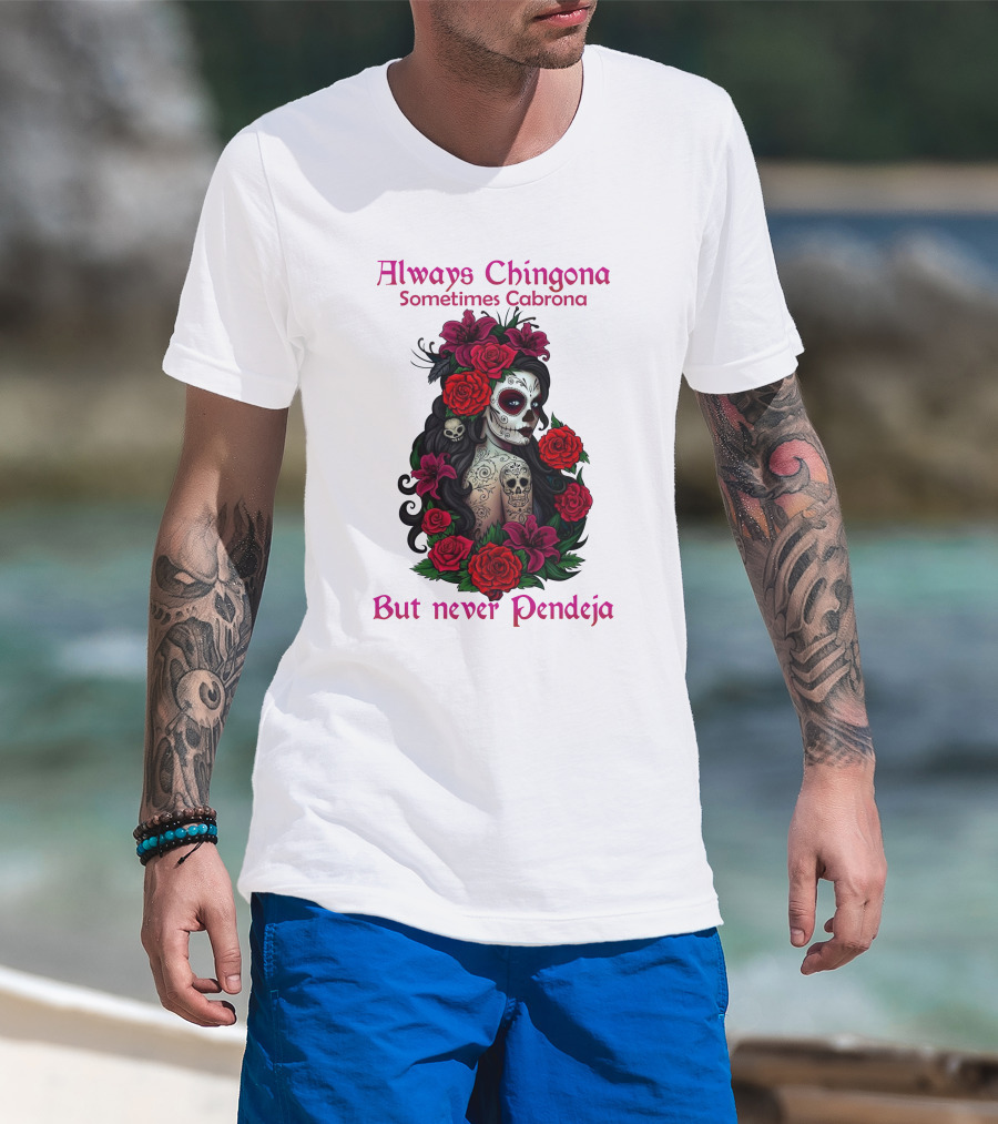Always Chingona Sometimes Cabrona But Never Pendeja Day Of The Dead Sugar Skull Girl With Roses T-Shirt