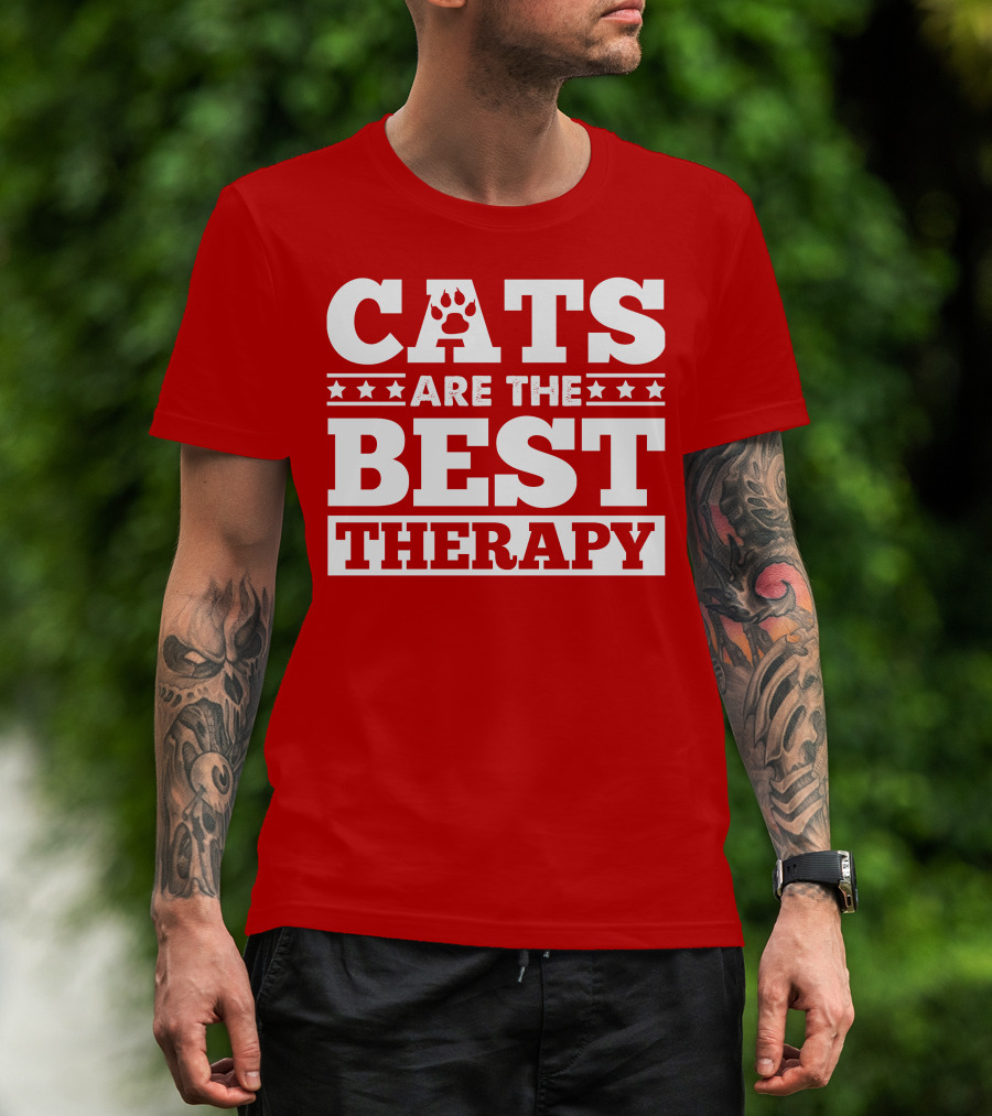 The CATS ARE THE BEST THERAPY T-shirt is designed for everyday wear and a consistent fit. Fabric is pre-shrunk ring-spun cotton with durable stitching. See the size chart below for exact measurements.