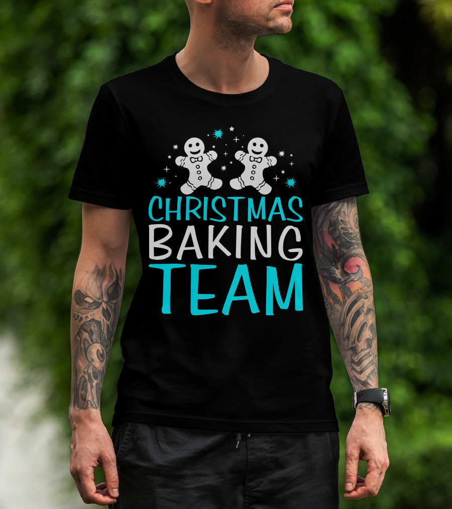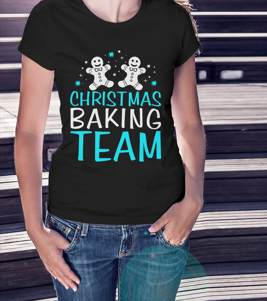 The Christmas Baking Team Funny Gingerbread Baker T-shirt is designed for everyday wear and a consistent fit. Fabric is pre-shrunk ring-spun cotton with durable stitching. See the size chart below for exact measurements.