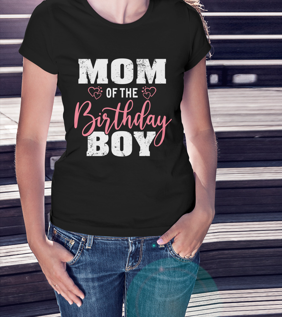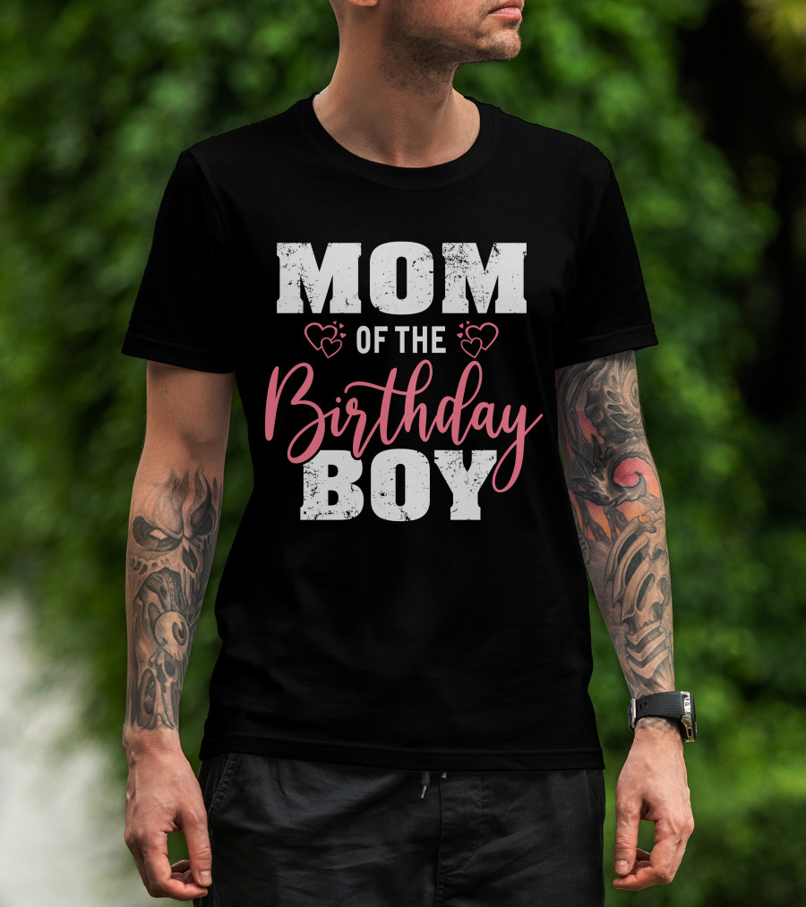 Mom Of The Birthday Boy With Hearts T-Shirt