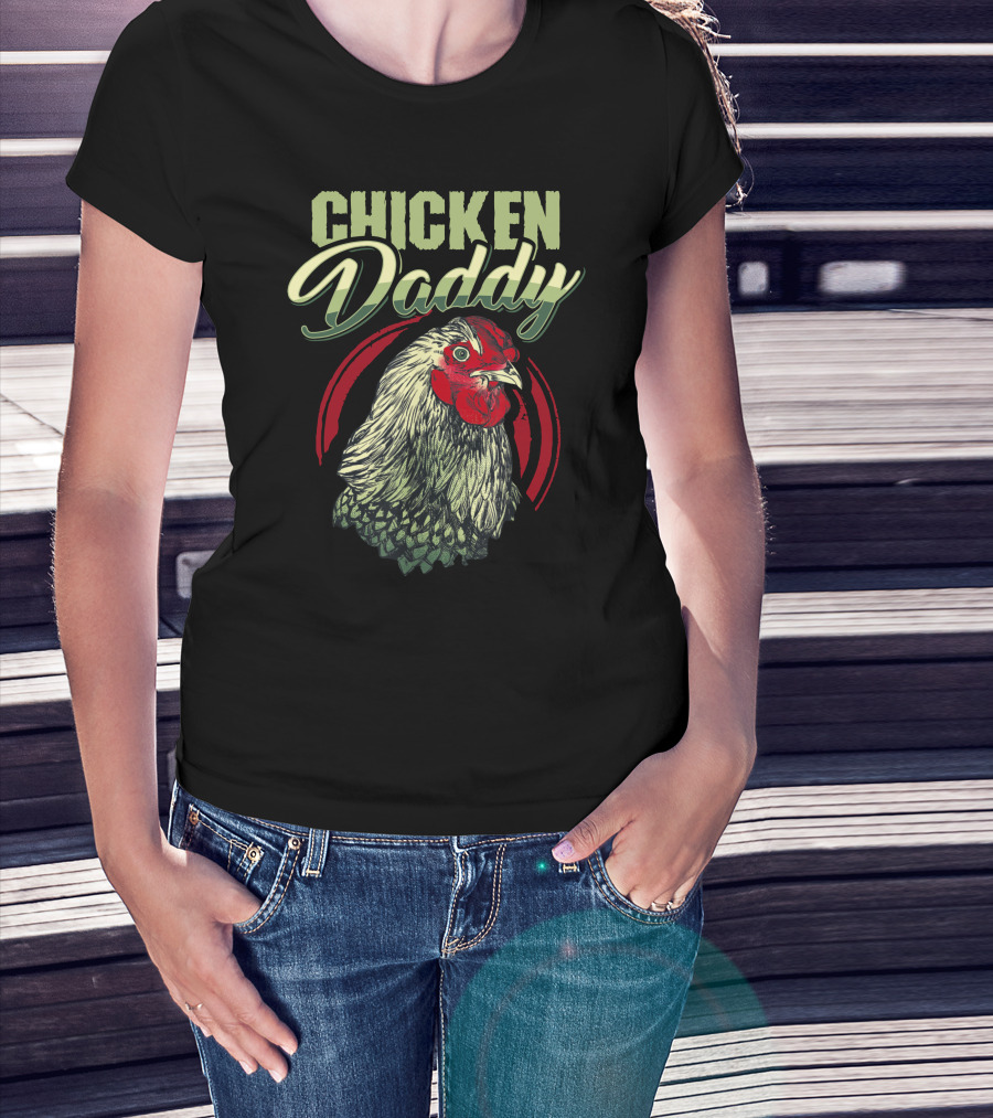 CHICKEN DADDY Rooster Graphic With Red And Green Details T-Shirt