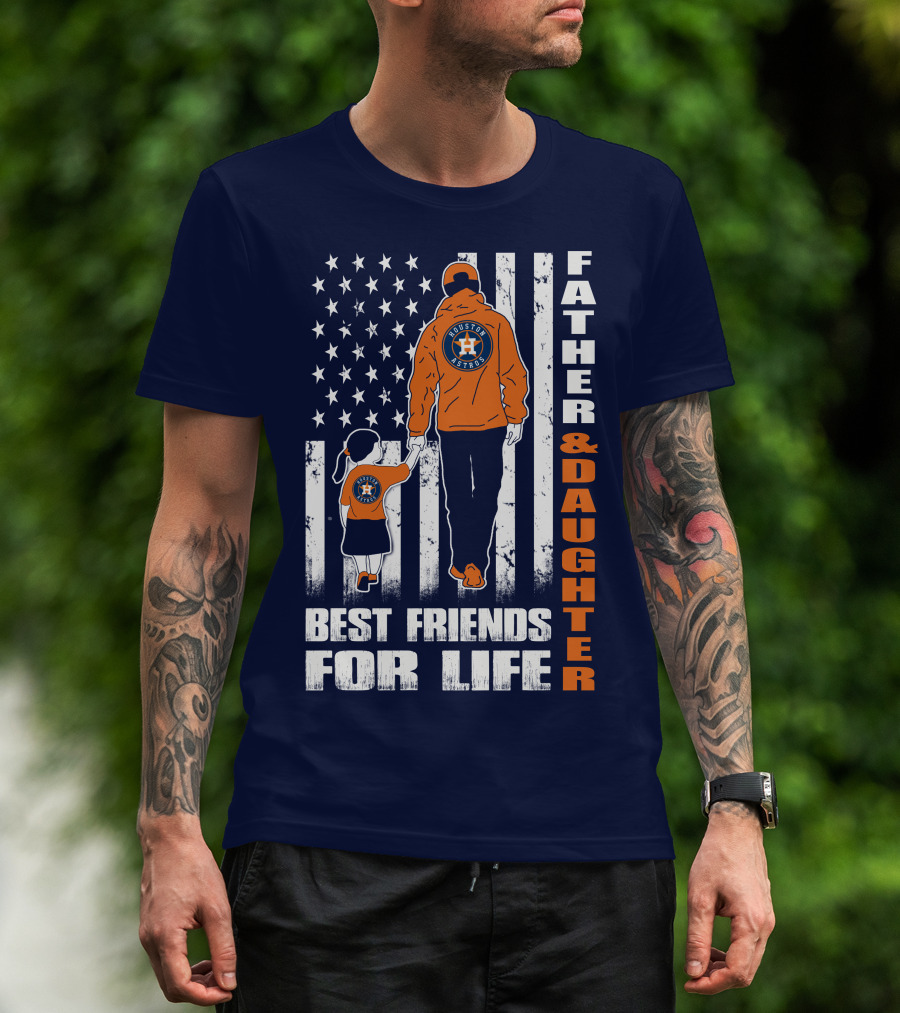 Father And Daughter Best Friends For Life Astros Fan With American Flag Background T-Shirt