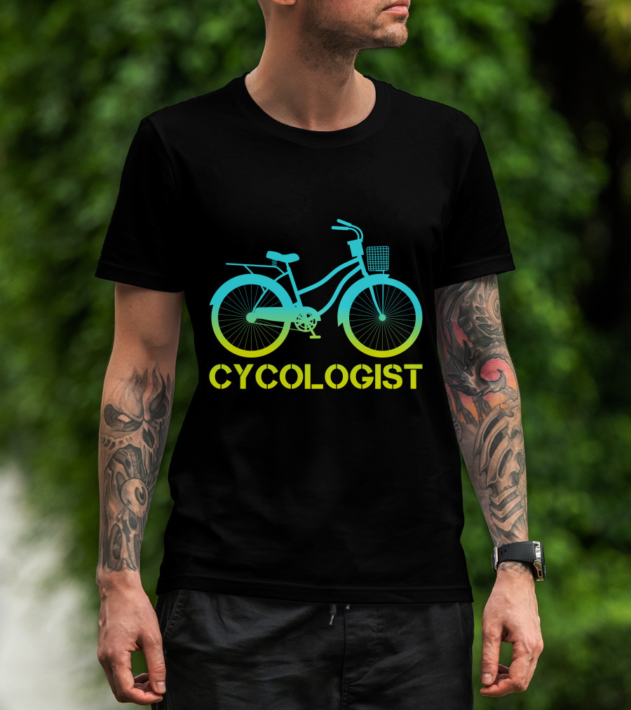 The CYCOLOGIST Bicycle with Gradient Colors T-shirt is designed for everyday wear and a consistent fit. Fabric is pre-shrunk ring-spun cotton with durable stitching. See the size chart below for exact measurements.
