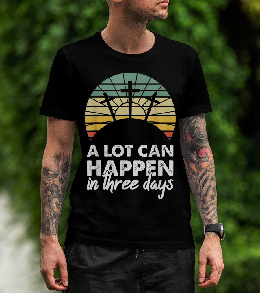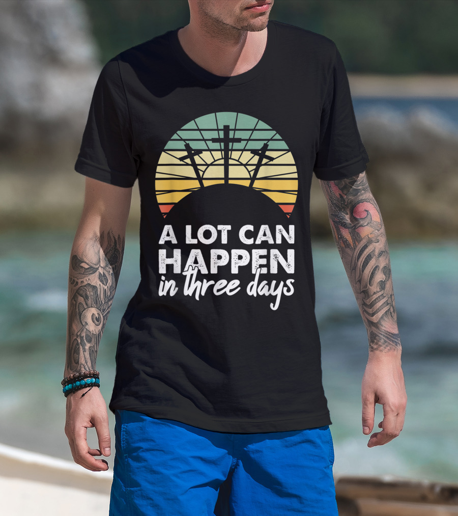 A Lot Can Happen In Three Days Easter Resurrection Day Crosses Sunset Stained Glass T-Shirt