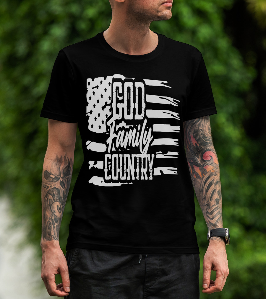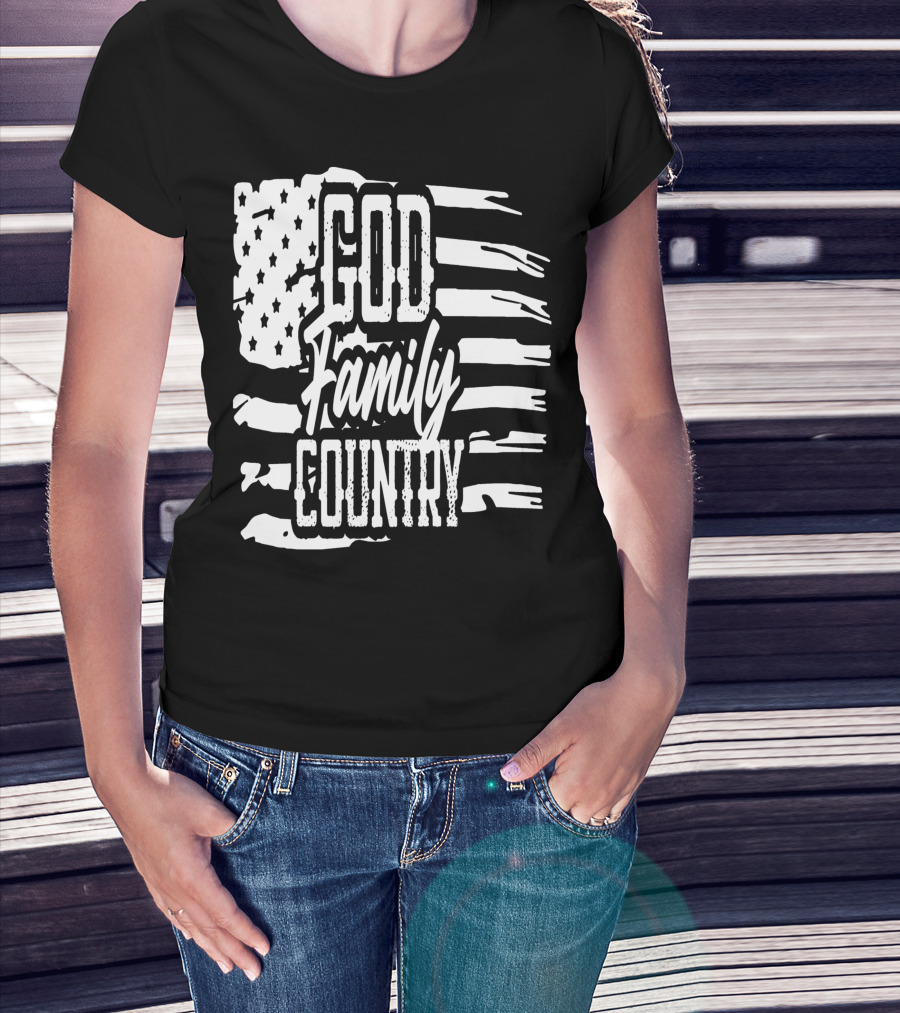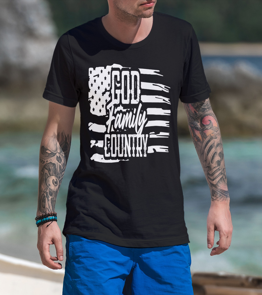 American Flag God Family Country Patriot Party Decor USA T-Shirt