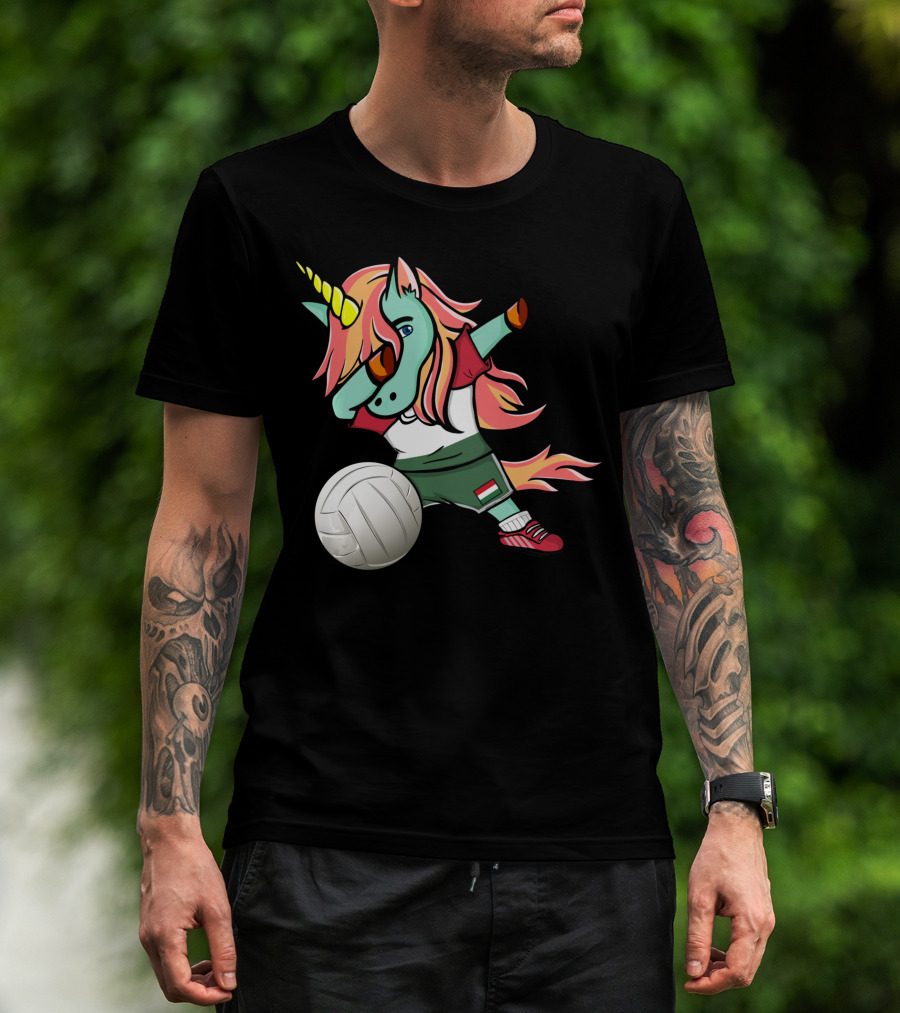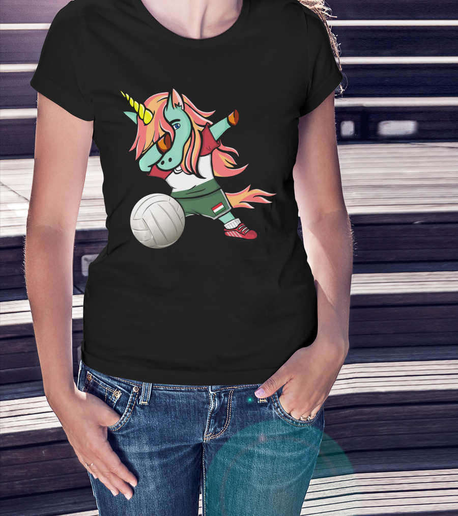 Dabbing Unicorn Hungarian Volleyball Lovers With Flag Jersey T-Shirt