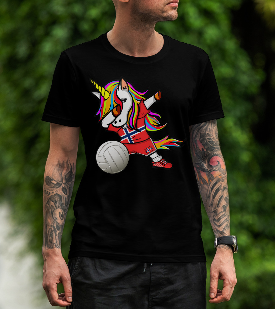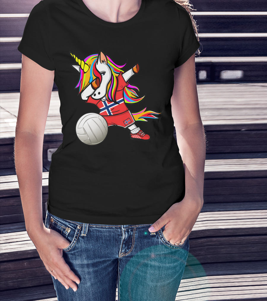Dabbing Unicorn Norway Volleyball Fans Norwegian Flag Rainbow Jersey T-Shirt