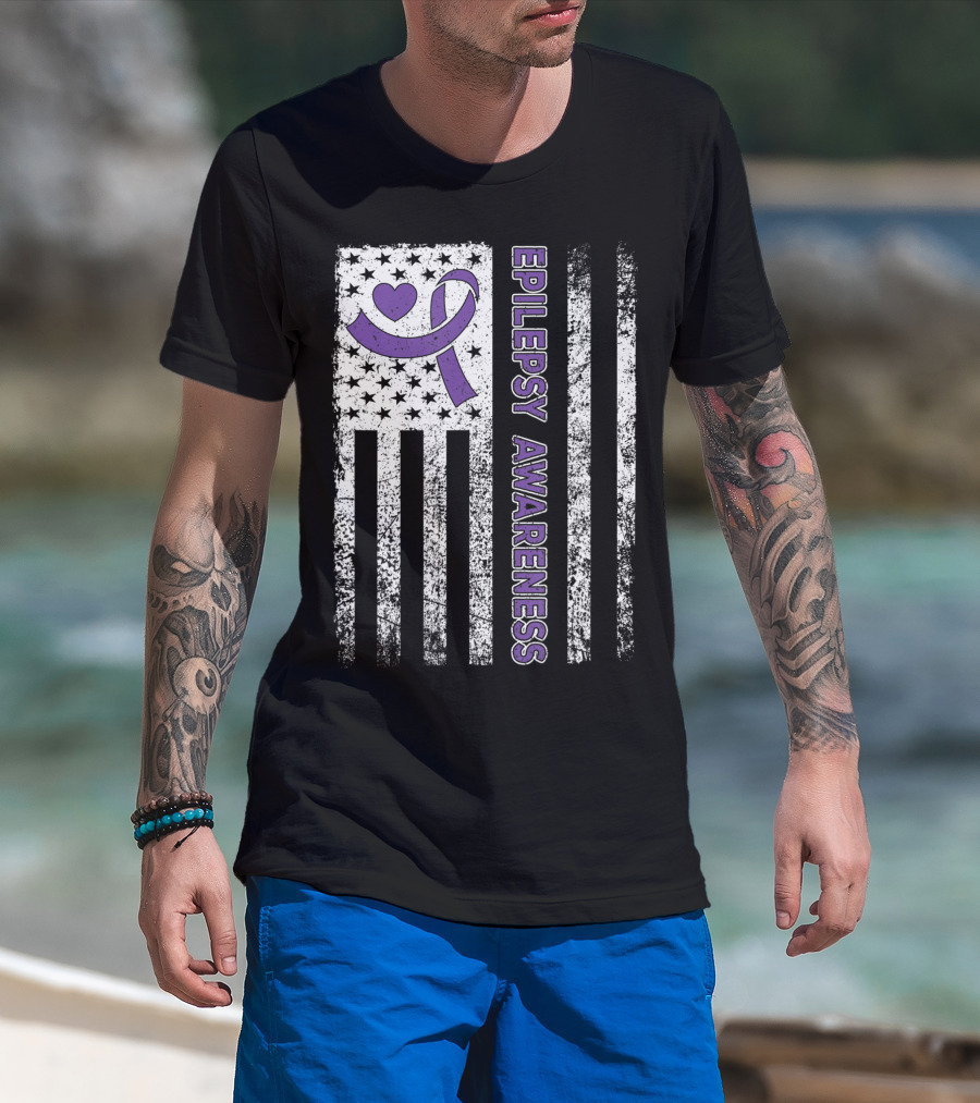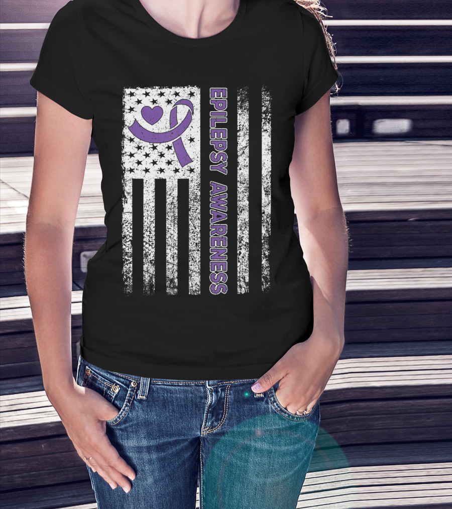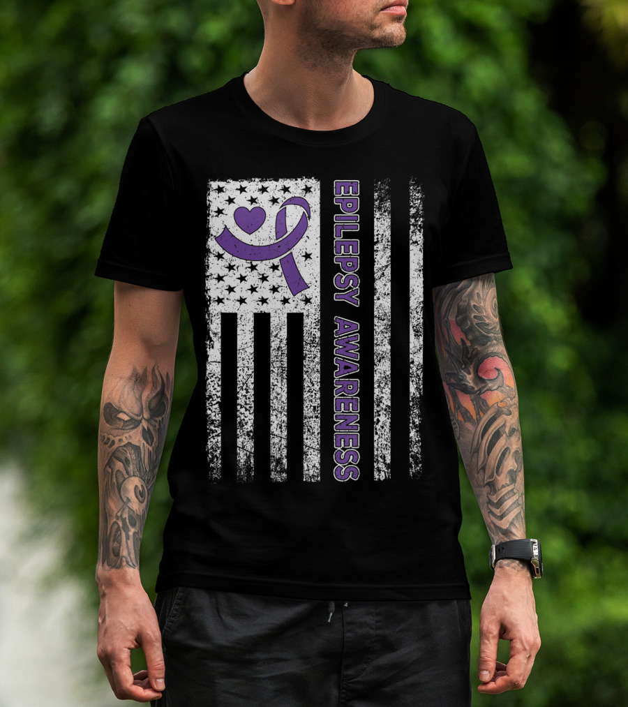 Epilepsy Awareness Flag Purple Ribbon Heart Warrior T-Shirt