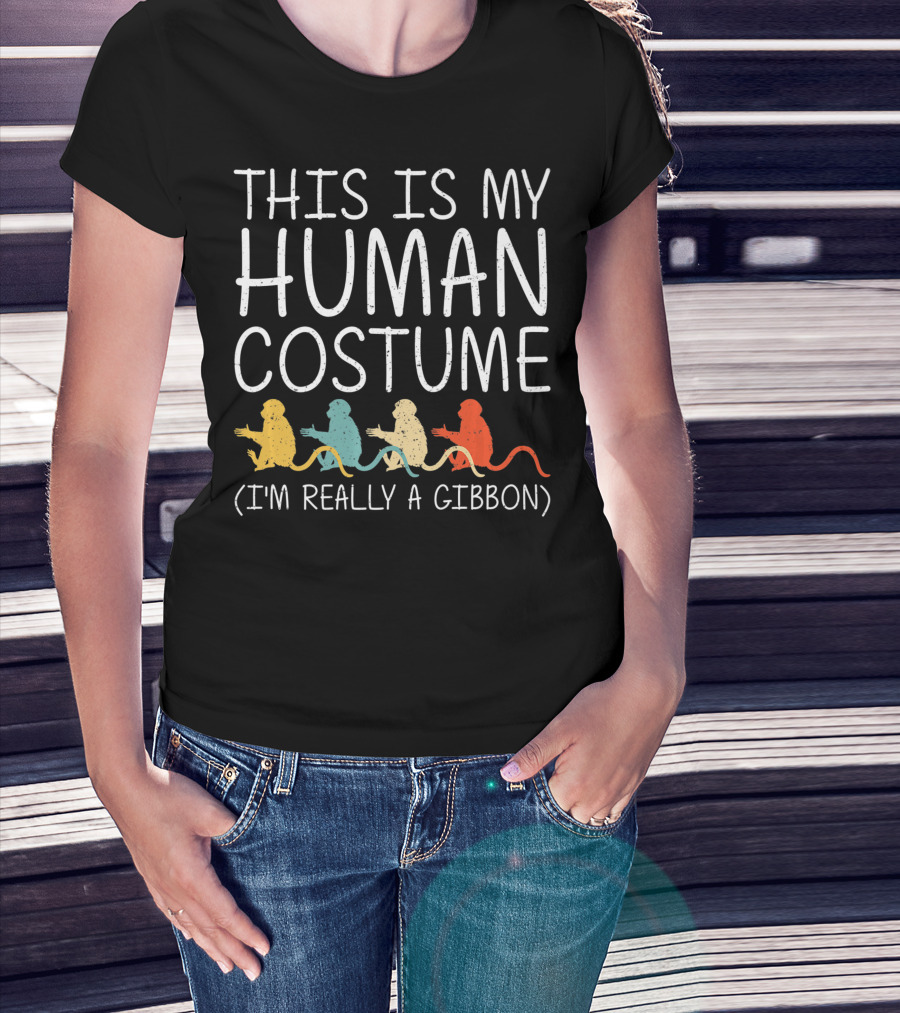 This Is My Human Costume I'm Really A Gibbon Lesser Ape Lar Halloween Easy DIY T-Shirt
