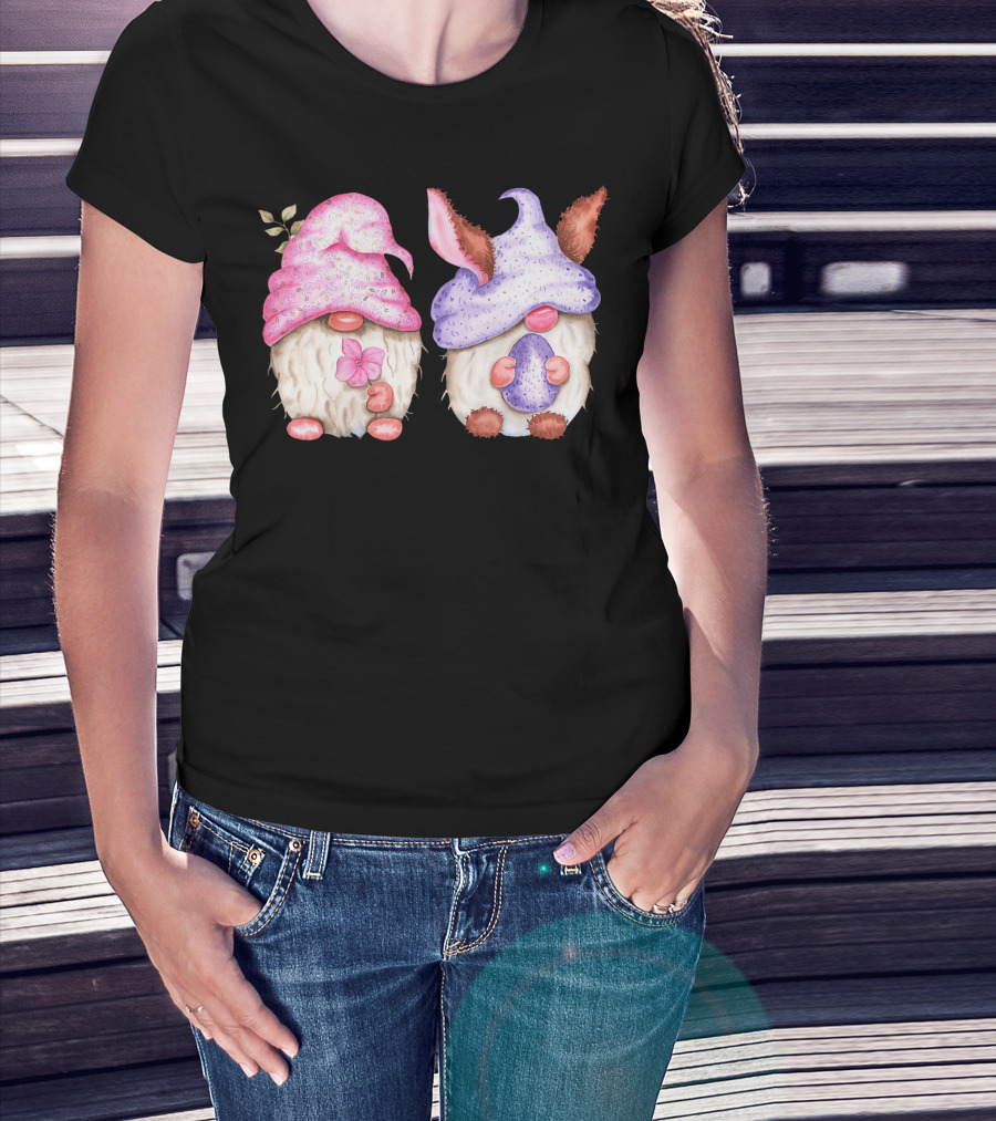 The Easter Gnome Springtime Bunny Hat Flowers and Egg T-shirt is designed for everyday wear and a consistent fit. Fabric is pre-shrunk ring-spun cotton with durable stitching. See the size chart below for exact measurements.