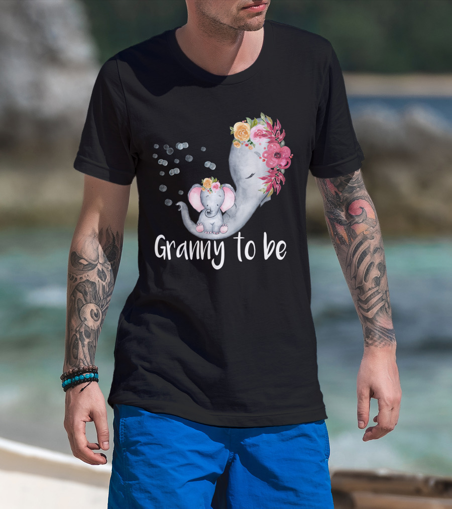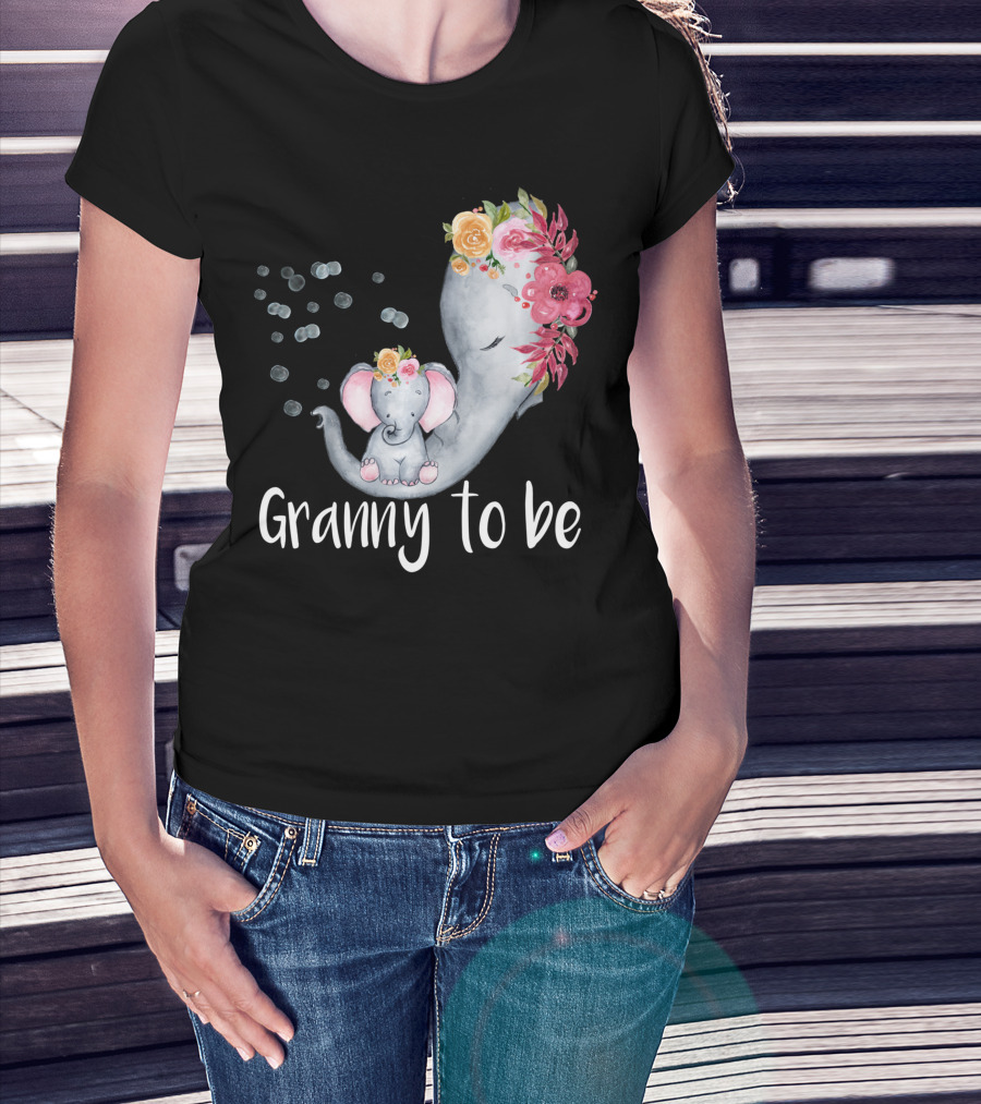 Granny To Be Elephant Baby Shower Floral For Girl T-Shirt
