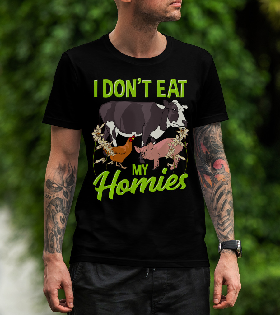 I Don't Eat My Homies Cow Pig Chicken Vegetarian Vegan Animal Lover T-Shirt