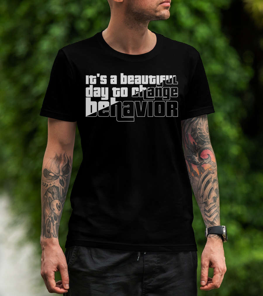 The It's a Beautiful Day to Change Behavior T-shirt is designed for everyday wear and a consistent fit. Fabric is pre-shrunk ring-spun cotton with durable stitching. See the size chart below for exact measurements.
