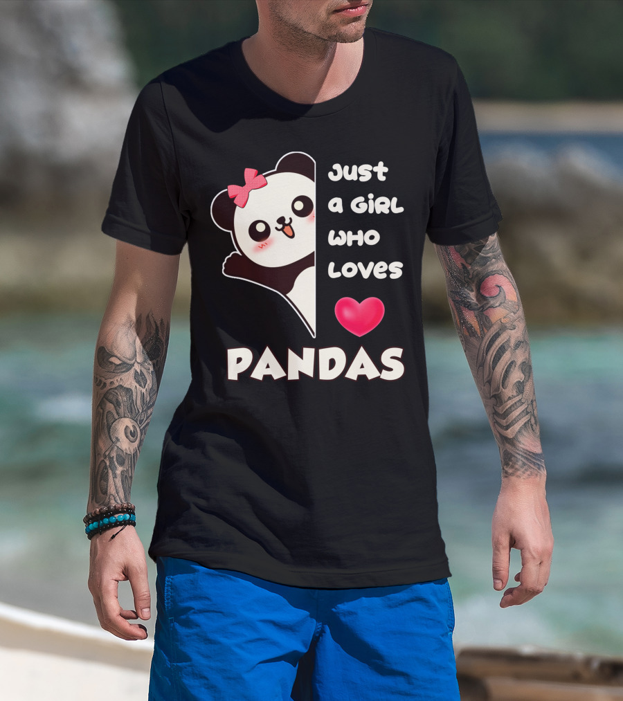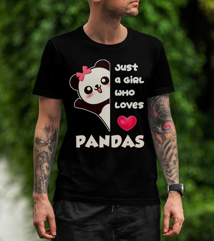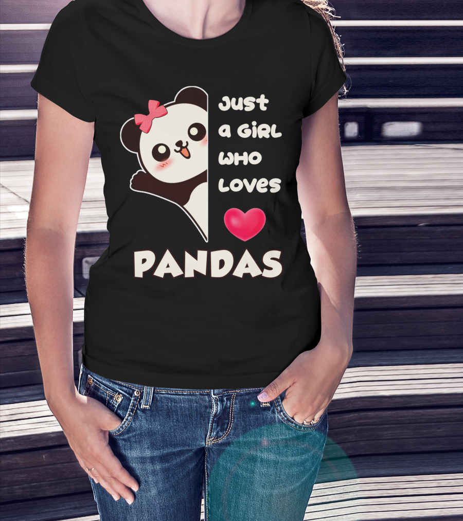 Just A Girl Who Loves Pandas Cute Kawaii Panda With Red Bow And Heart T-Shirt