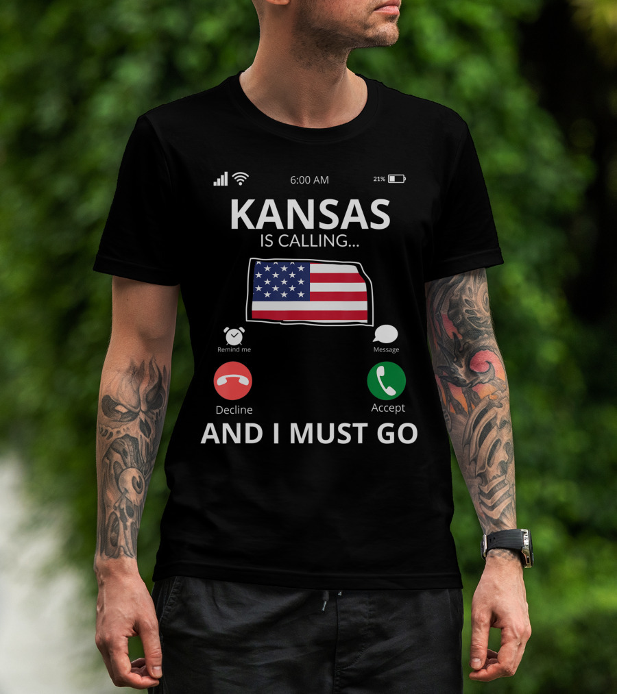 Kansas Is Calling And I Must Go Kansas Flag Mobile Screen T-Shirt