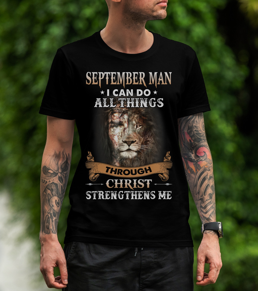 September Man I Can Do All Things Through Christ Strengthens Me Lion T-Shirt