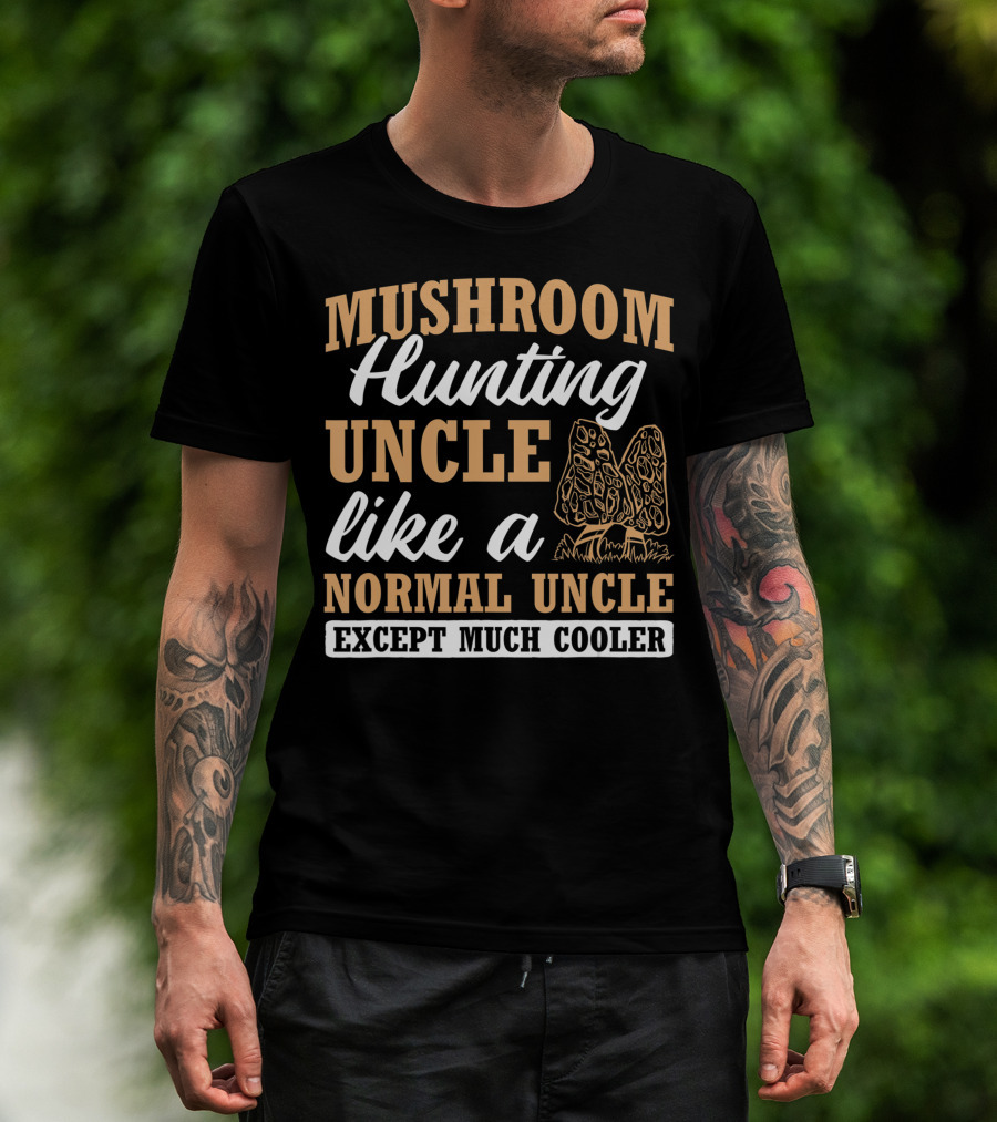 The Mushroom Hunting Uncle Like a Normal Uncle Except Much Cooler Mycology Expert Fungi T-shirt is designed for everyday wear and a consistent fit. Fabric is pre-shrunk ring-spun cotton with durable stitching. See the size chart below for exact measurements.