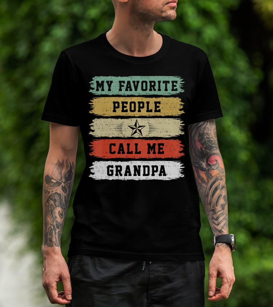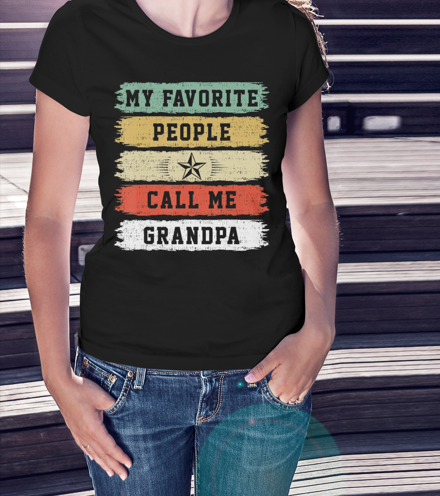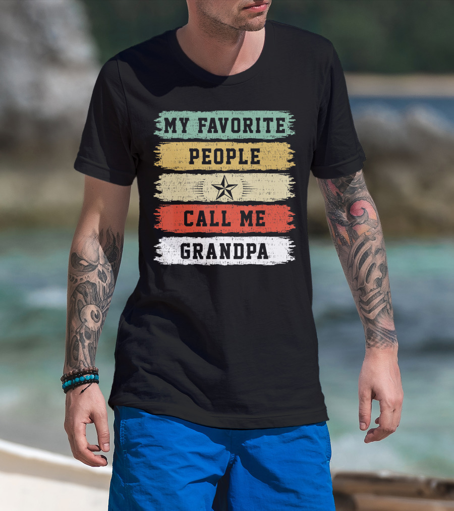 My Favorite People Call Me Grandpa Distressed Stripes Star T-Shirt