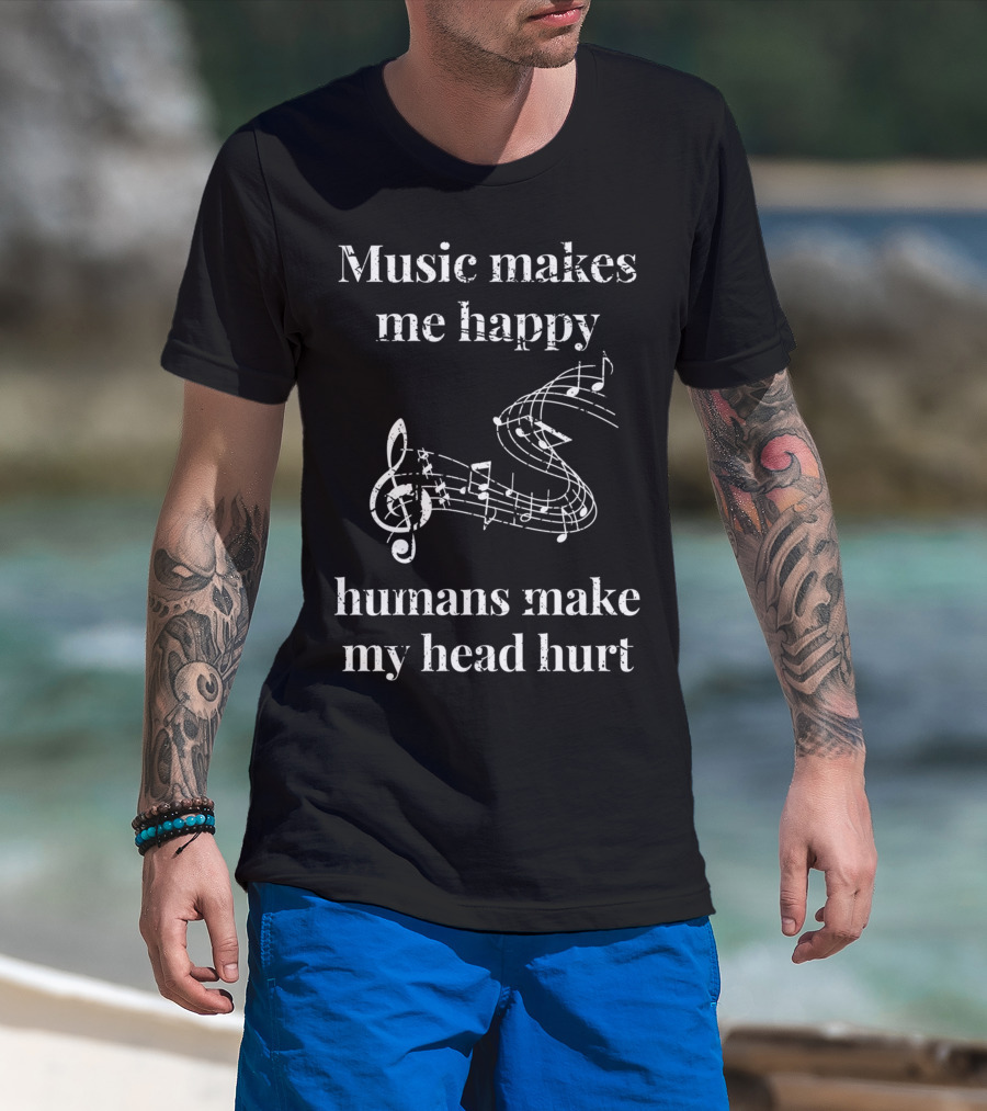 Music Makes Me Happy Humans Make My Head Hurt Musical Notes Musicians T-Shirt