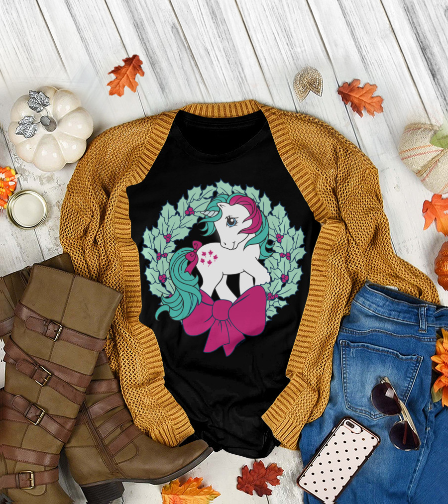 The My Little Pony Christmas Holly Wreath with Bow and Pink Mane T-shirt is designed for everyday wear and a consistent fit. Fabric is pre-shrunk ring-spun cotton with durable stitching. See the size chart below for exact measurements.
