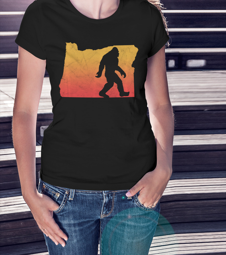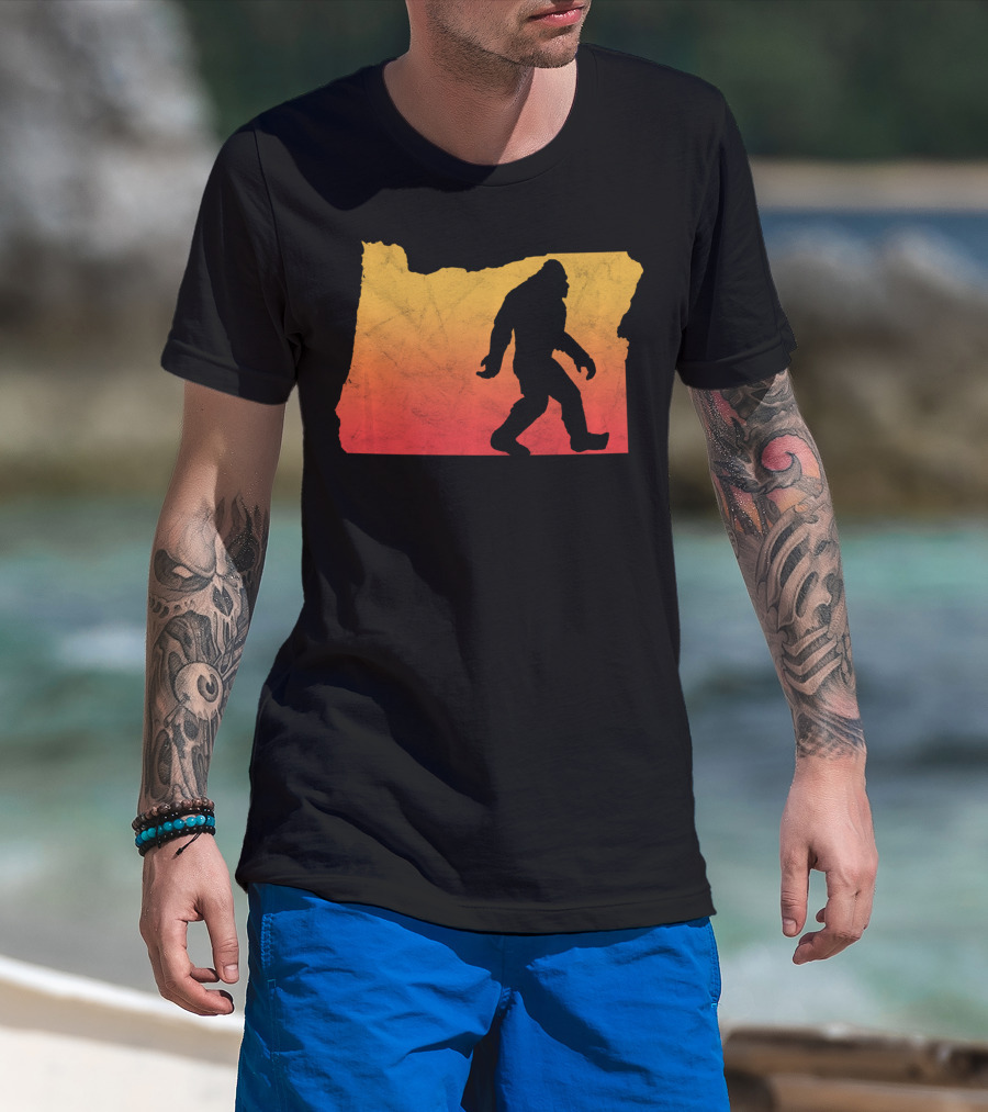 Retro Bigfoot Believer Vintage State Of Oregon Sunset T-Shirt