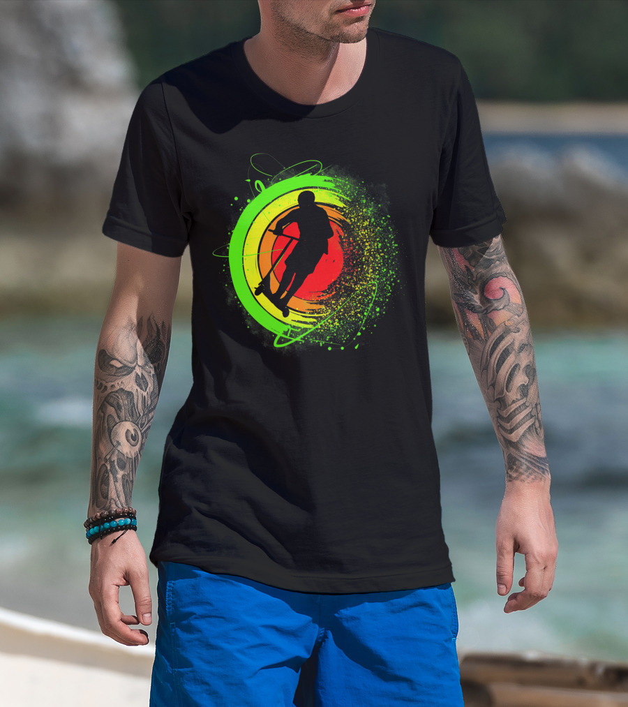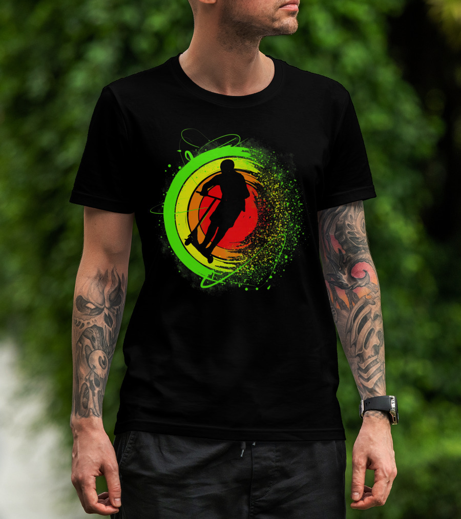 Scooter Stunt Action Silhouette In Vivid Circular Splash T-Shirt
