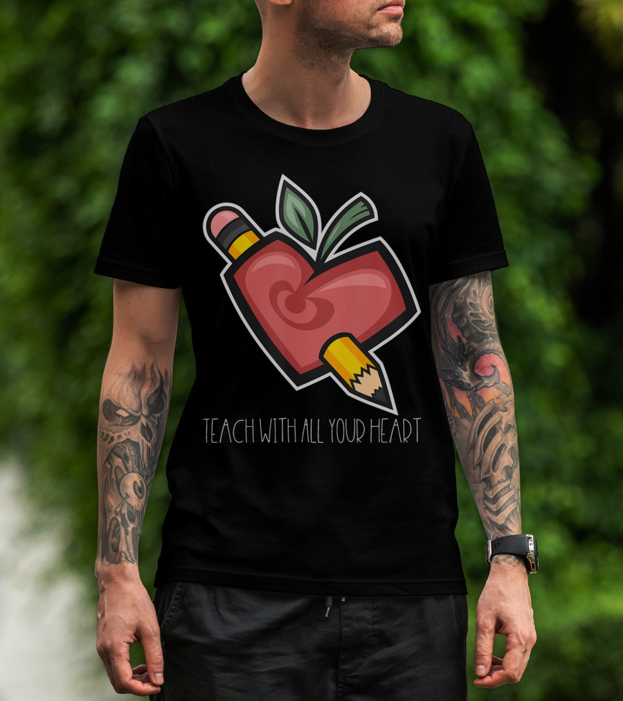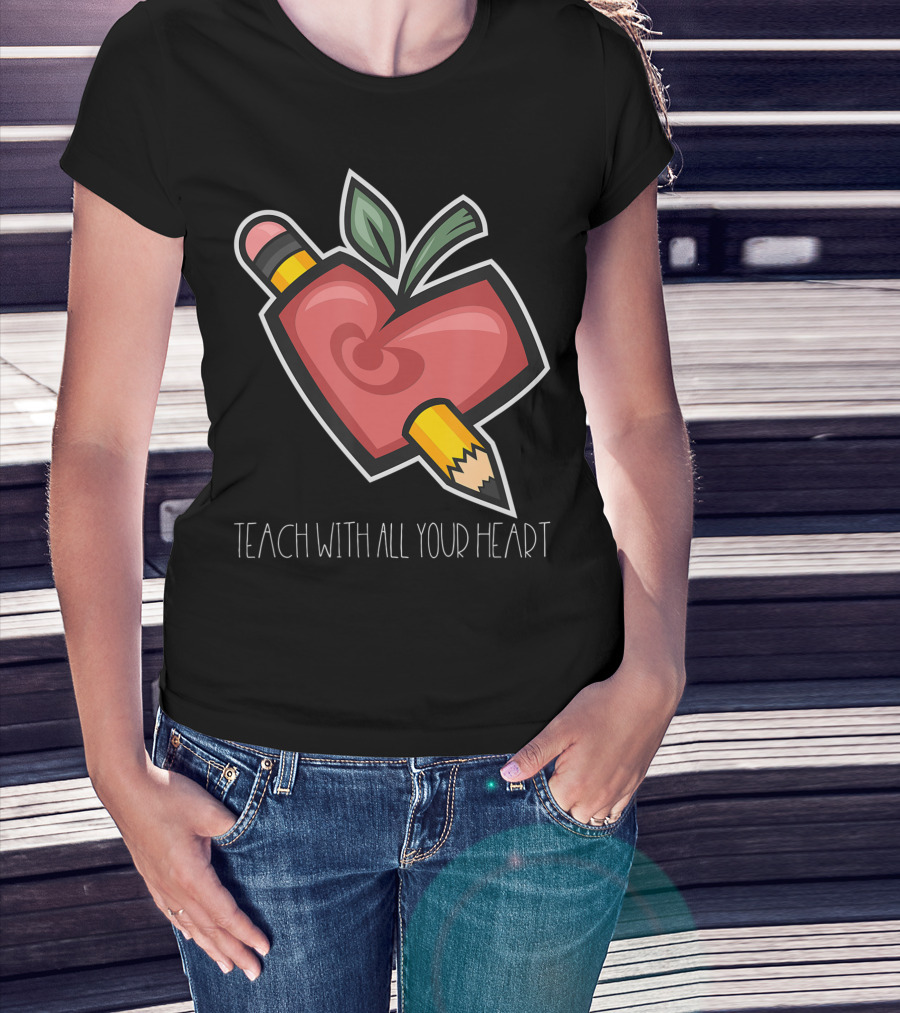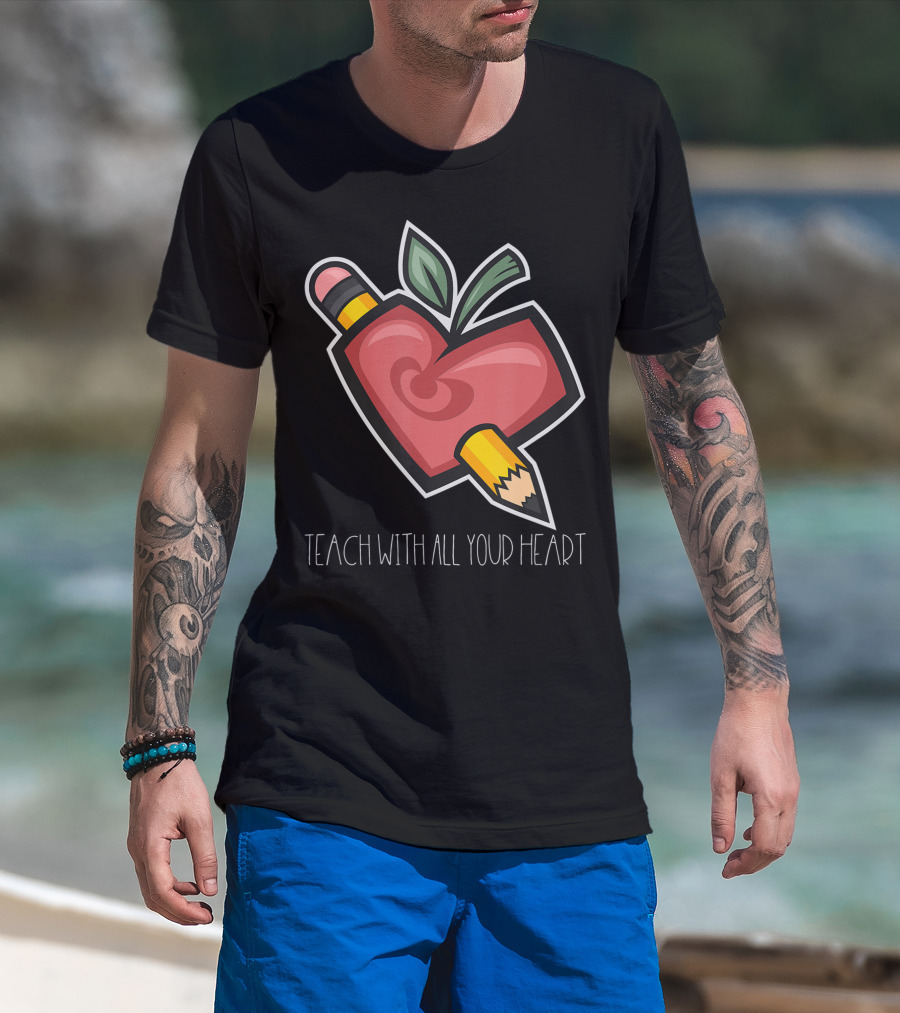 Teach With All Your Heart Pencil And Heart Shape For Teachers School T-Shirt