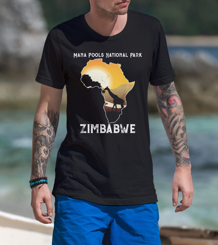 The Mana Pools National Park Africa Giraffe Sunset Zimbabwe T-shirt is designed for everyday wear and a consistent fit. Fabric is pre-shrunk ring-spun cotton with durable stitching. See the size chart below for exact measurements.