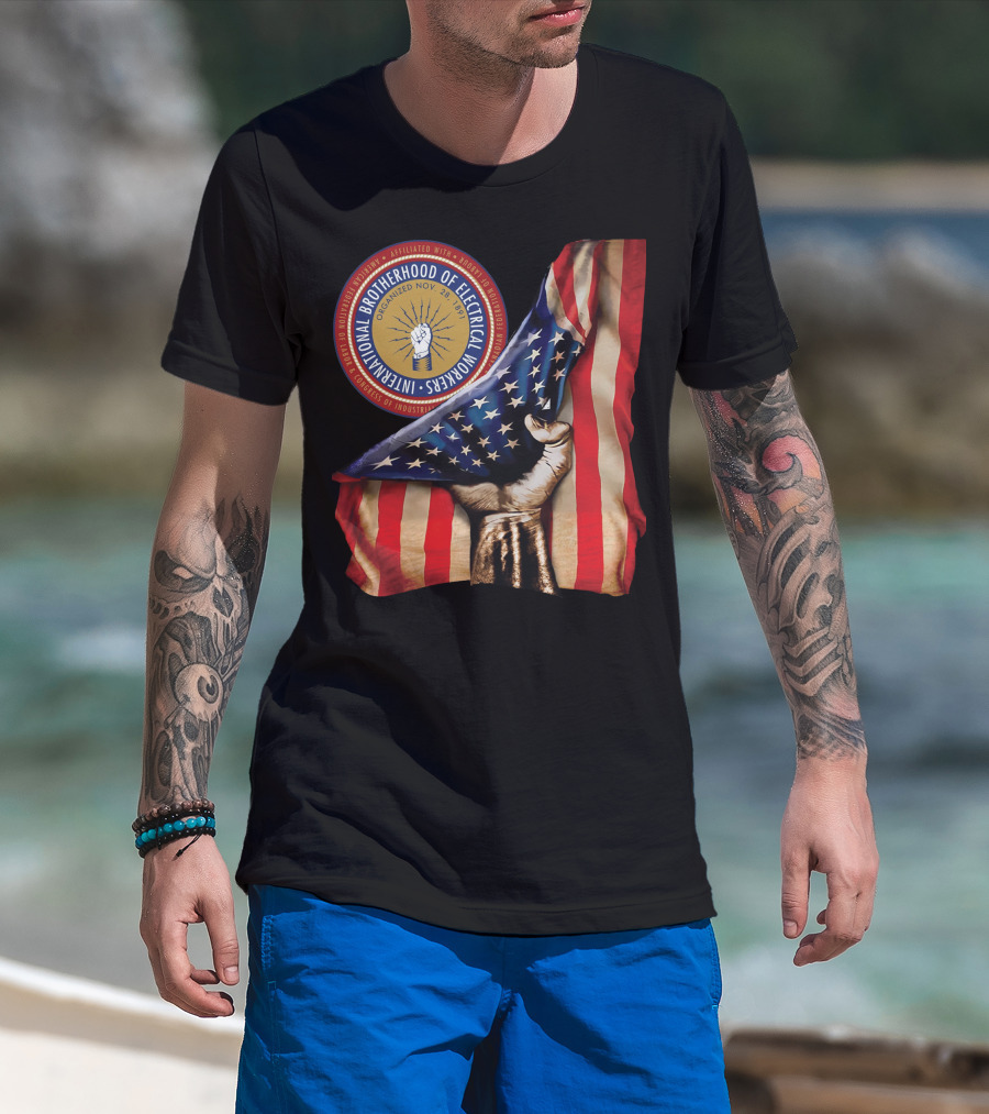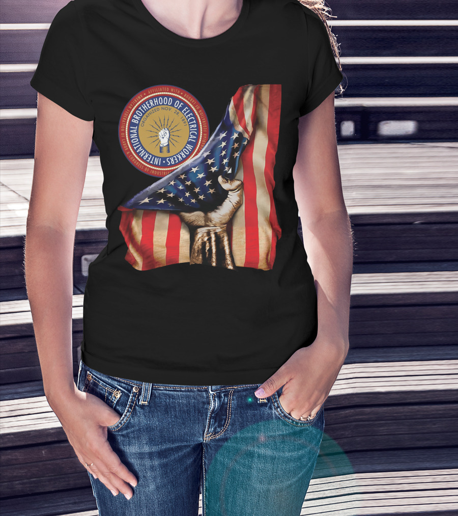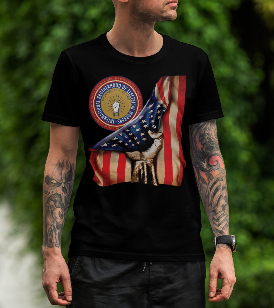 INTERNATIONAL BROTHERHOOD OF ELECTRICAL WORKERS ORGANIZED NOV 28 1891 AMERICAN FLAG HAND FIST STRIPED IBEW NXTM139 T-Shirt