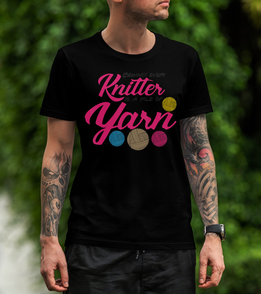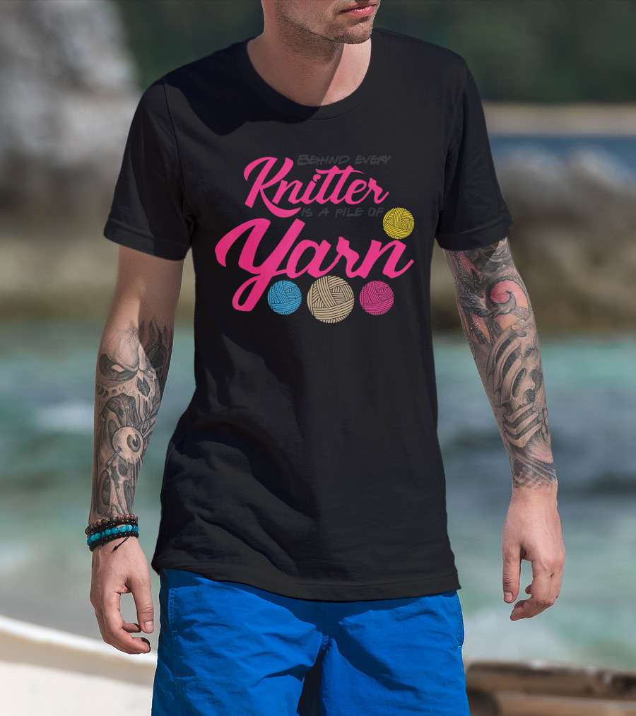 The Behind Every Knitter Is A Pile Of Yarn Crocheter Colorful Balls T-shirt is designed for everyday wear and a consistent fit. Fabric is pre-shrunk ring-spun cotton with durable stitching. See the size chart below for exact measurements.