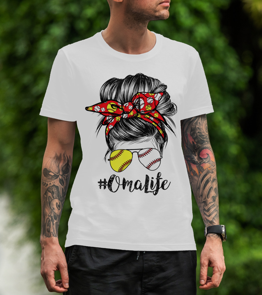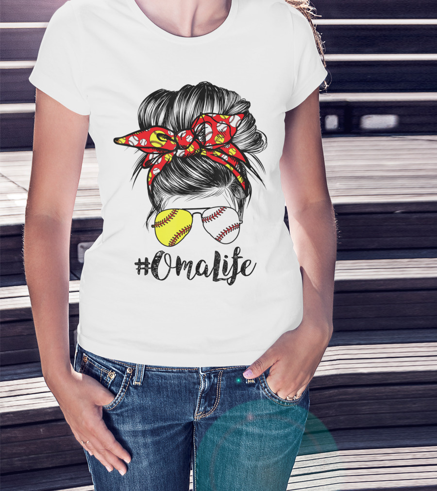 OmaLife Messy Bun Hair Softball Baseball Sunglasses T-Shirt
