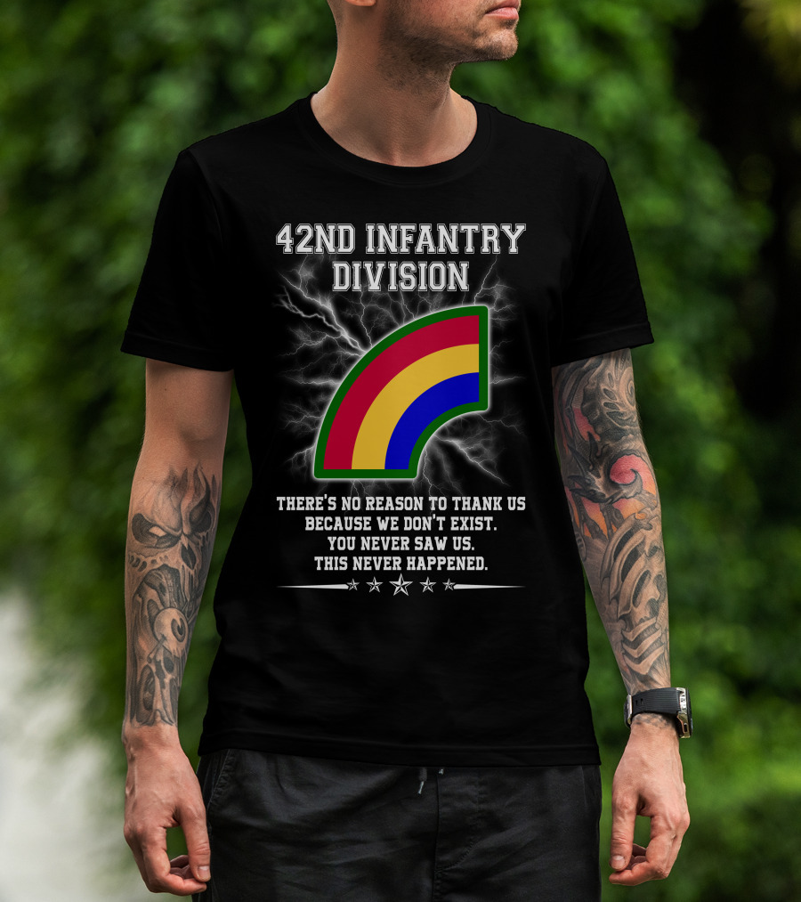 42nd Infantry Division There's No Reason To Thank Us Because We Don't Exist You Never Saw Us This Never Happened T-Shirt